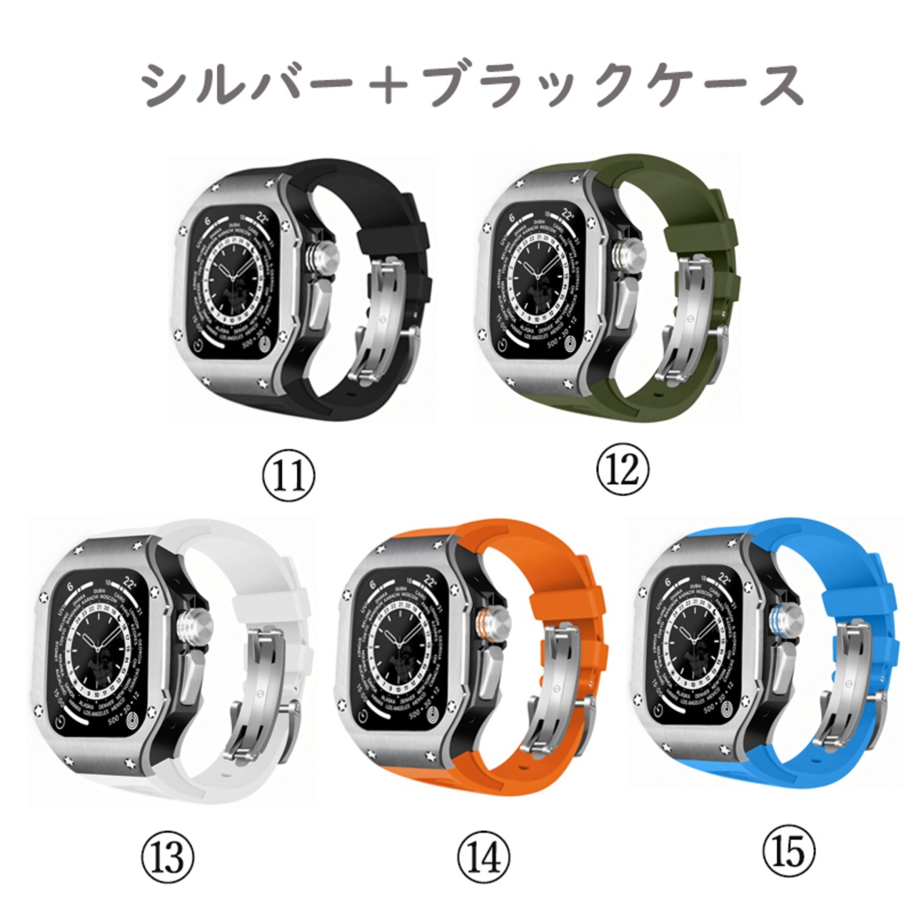apple watch8 Ultra 49mm アップルウォッチ ケース バンド 高級 替え ベルト カバー ステンレス+ラバー