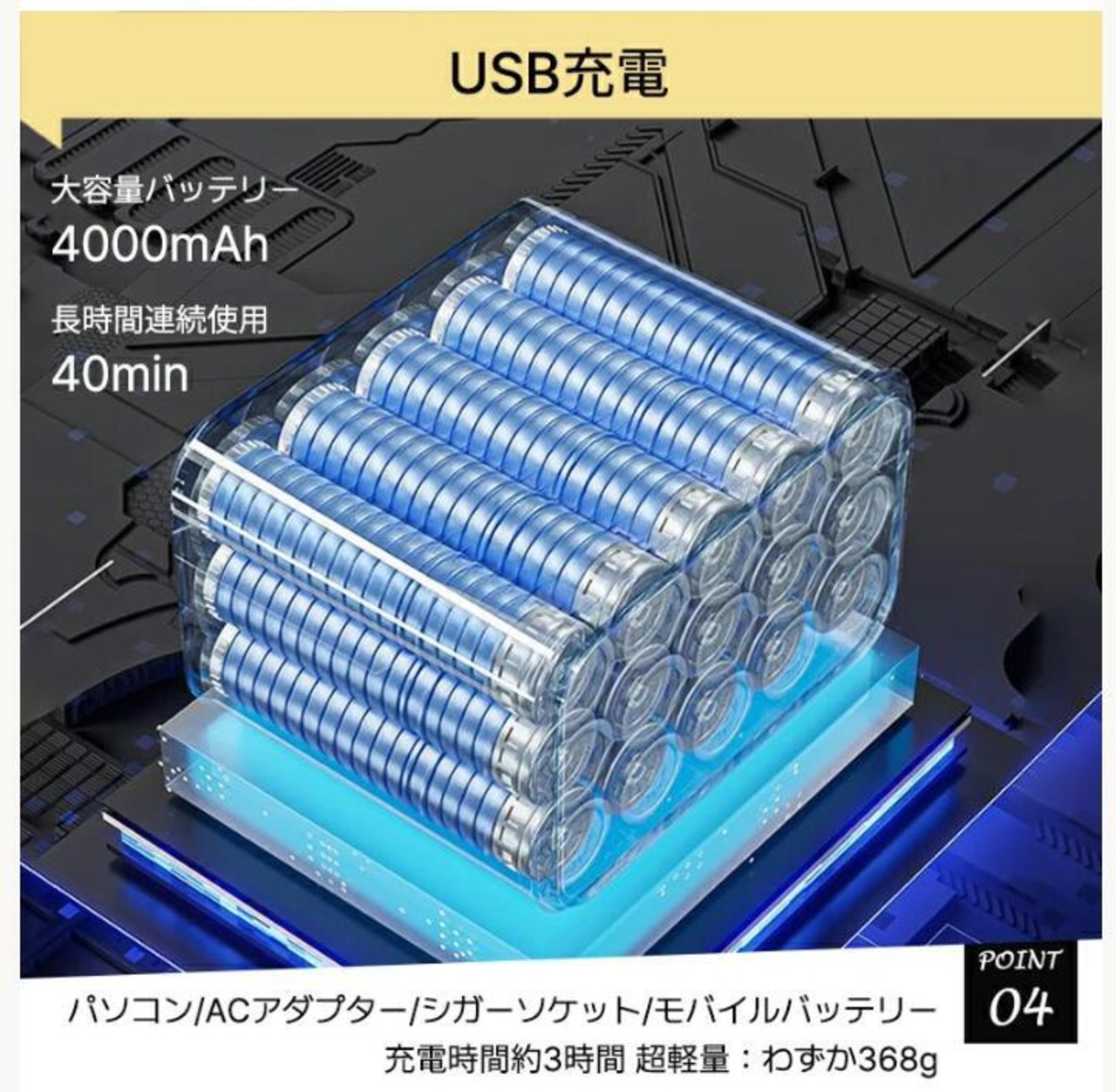 バッテリー容量 4000mAh