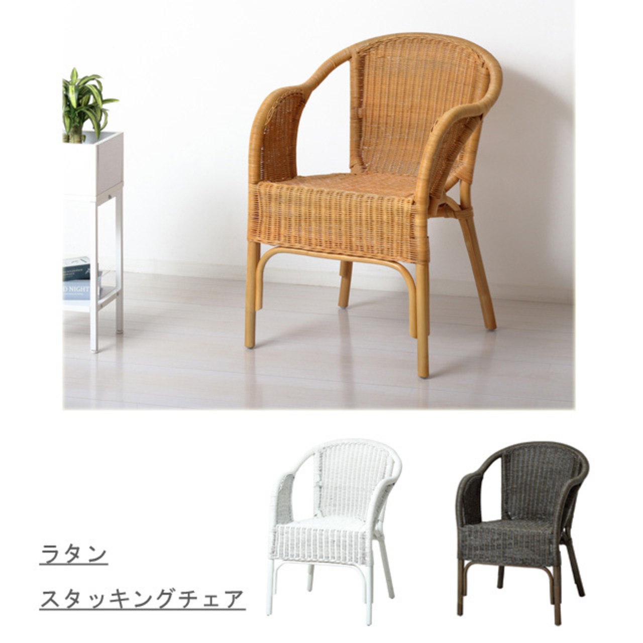 ラタン スタッキングチェア (ホワイト) (ナチュラル) (ブラウン)