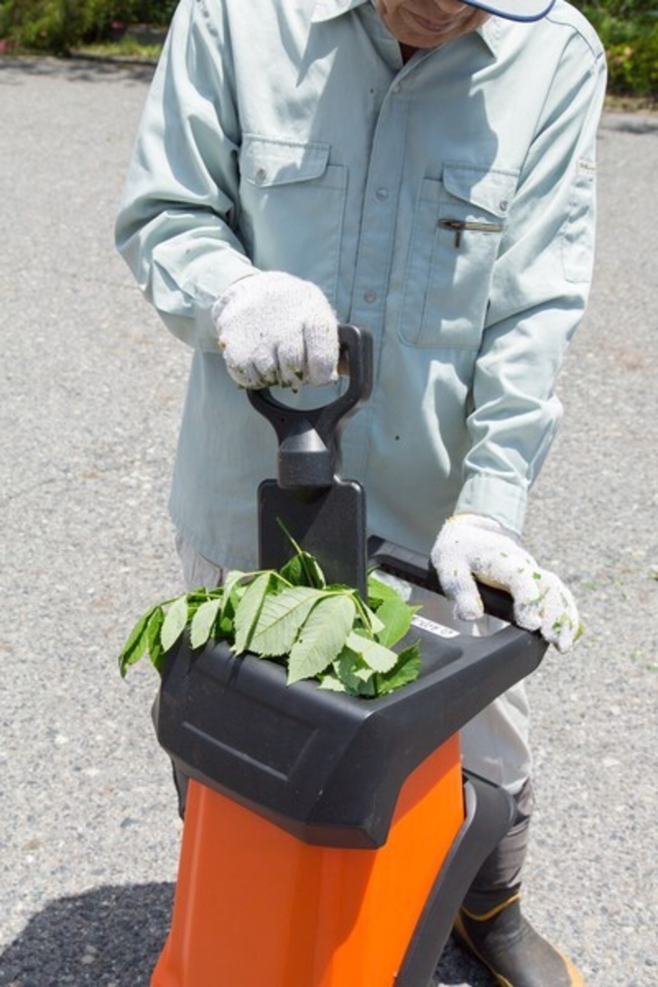 ●庭木の剪定で出てしまう大量の枝木もハイパワーで細かなチップ状に粉砕!
