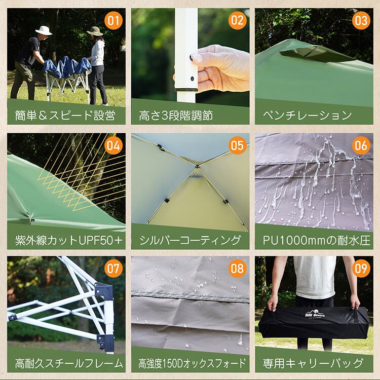 タープテント テント ワンタッチ 2m 日よけ 日除け 軽量 キャンプ アウトドア レジャー用品