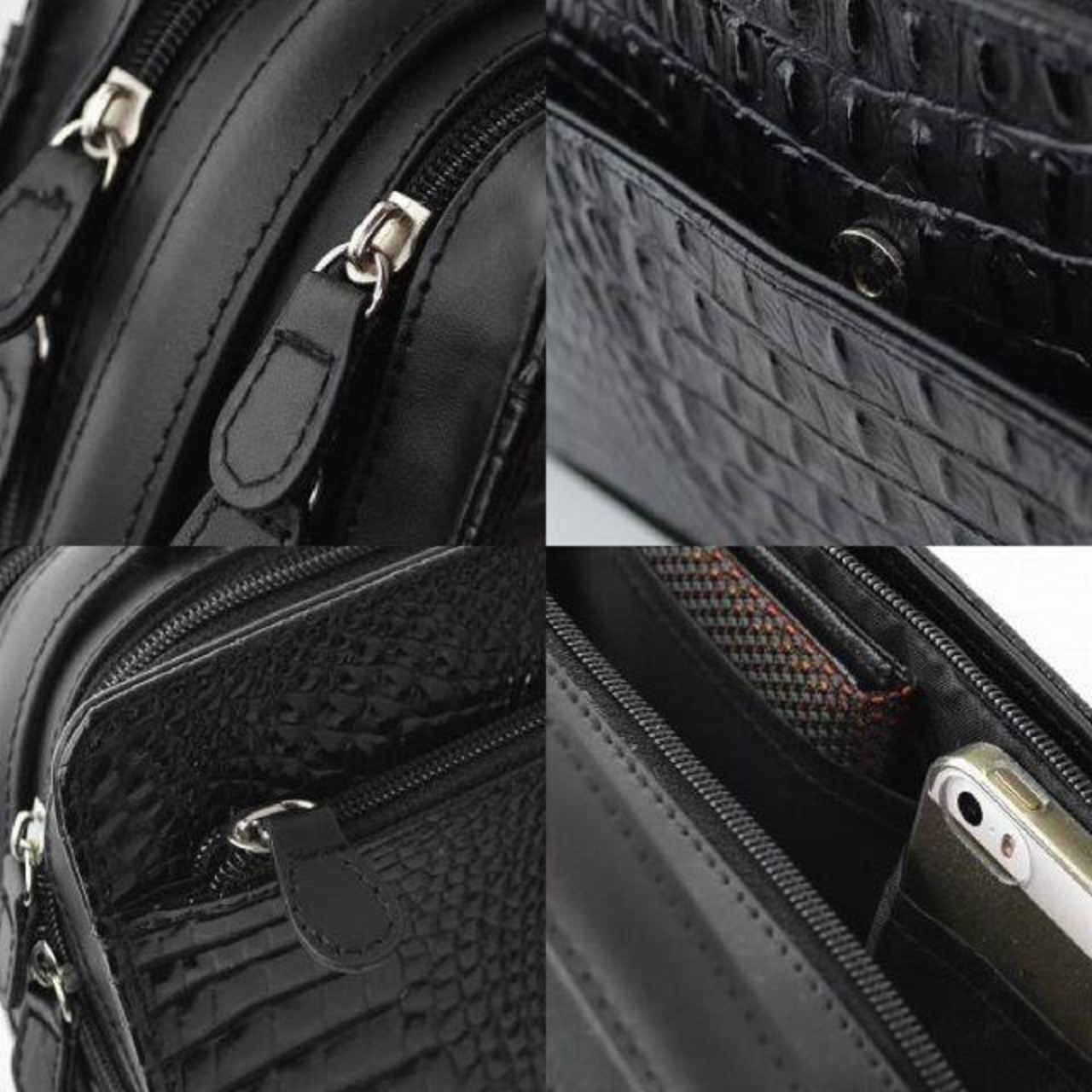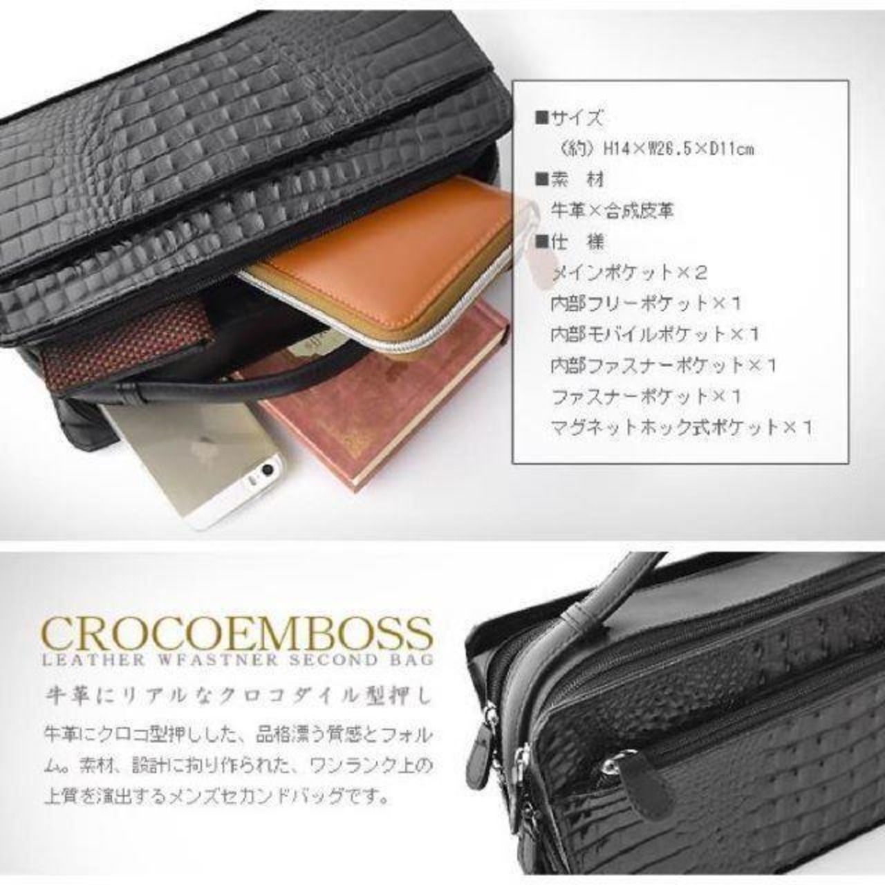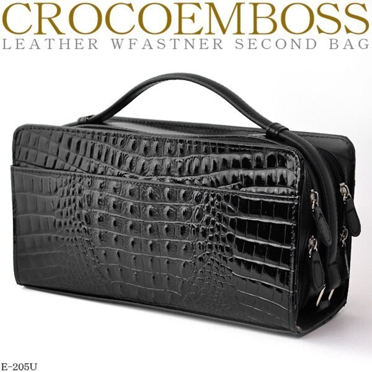 上質な牛革にクロコダイルを型押しした高級感溢れるセカンドバッグ。