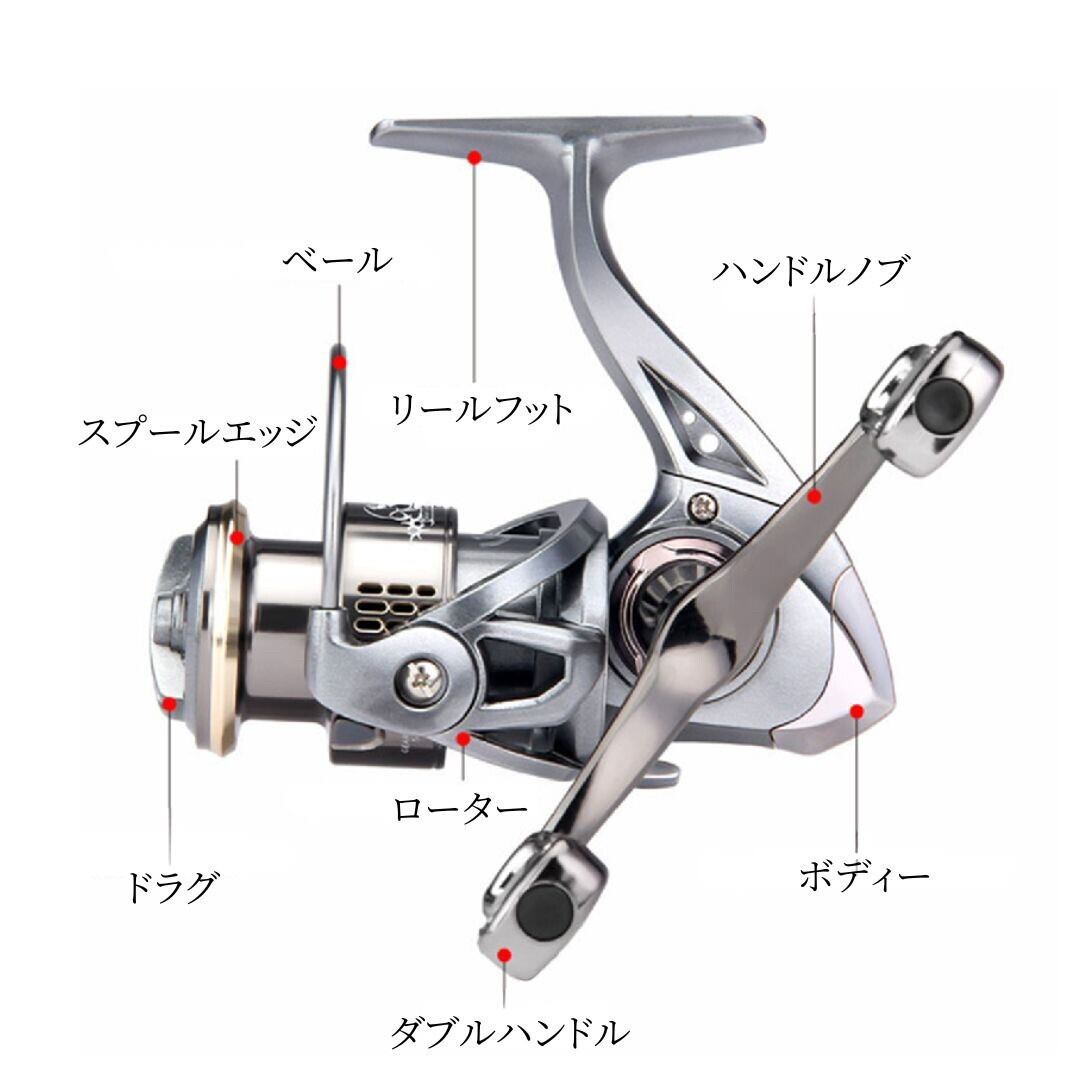 スピニングリール 銀翼 silverwing メタル シルバー ダブルハンドルリール 3000 5.2:1 最大ドラグ力 8kg