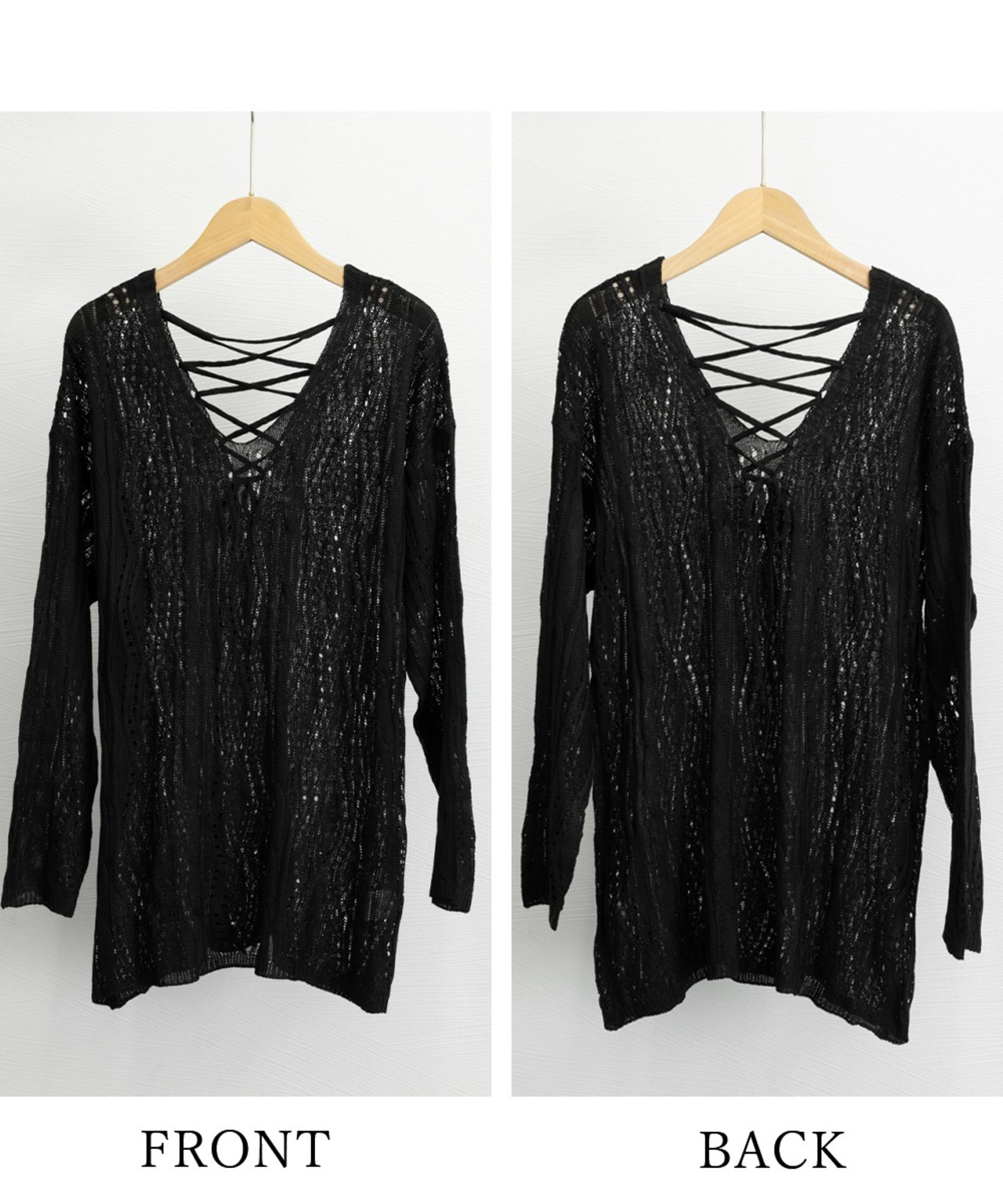 レースアップがキュートな2way透かし編みニットトップス