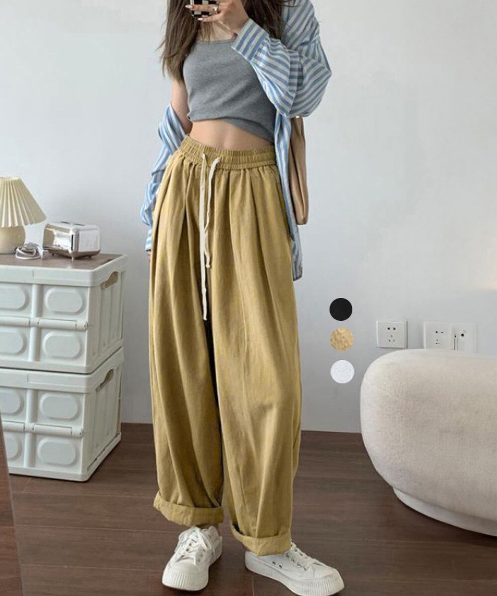 着やせボトムス無地 ウエストゴムズボン 韓国風パンツ春夏秋