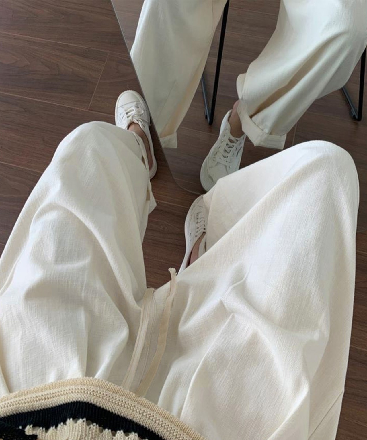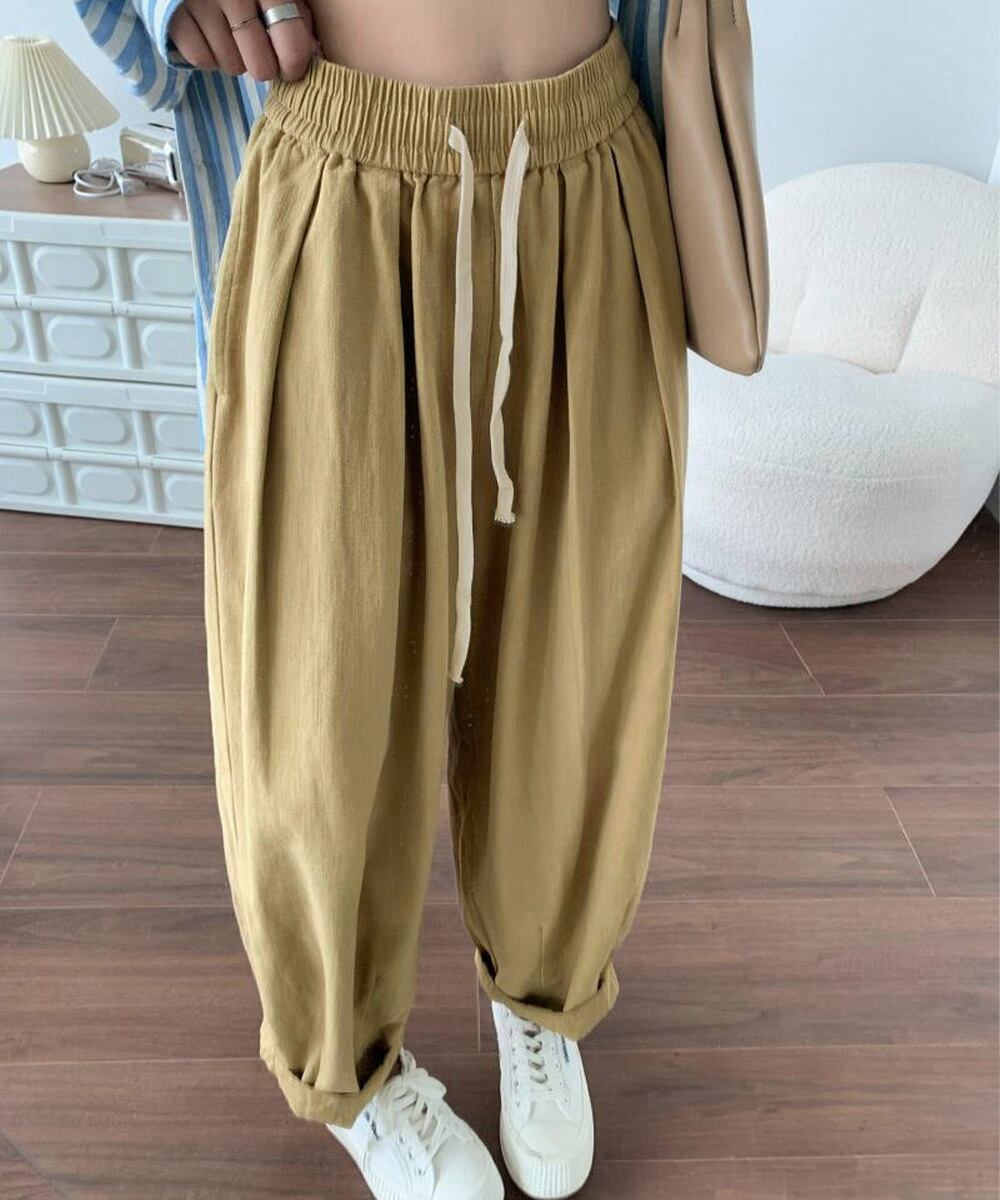 ウエストゴム&紐仕様で調節できるので、お好みに合わせてストレスフリーなはき心地