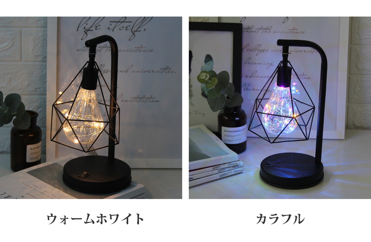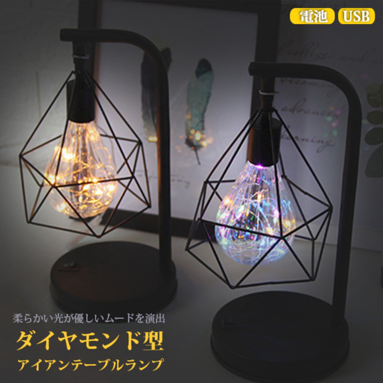 柔らかい光が優しいムードを演出 ダイヤモンド型アイアンテーブルランプ