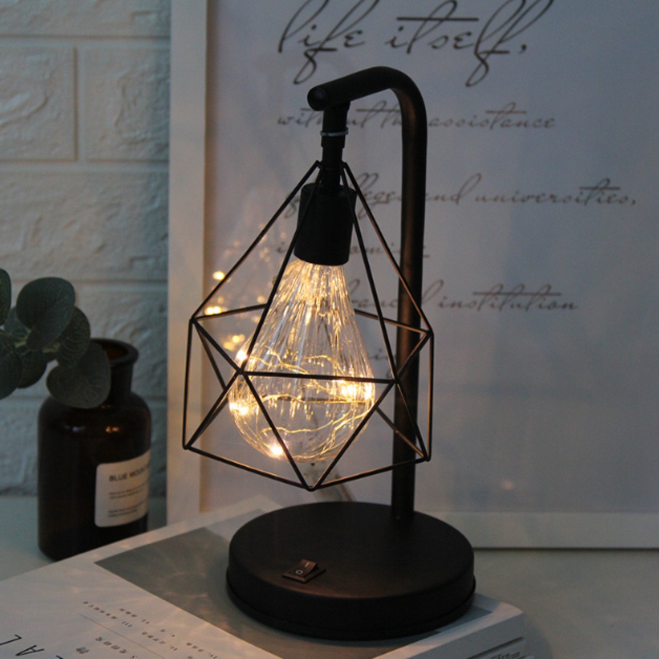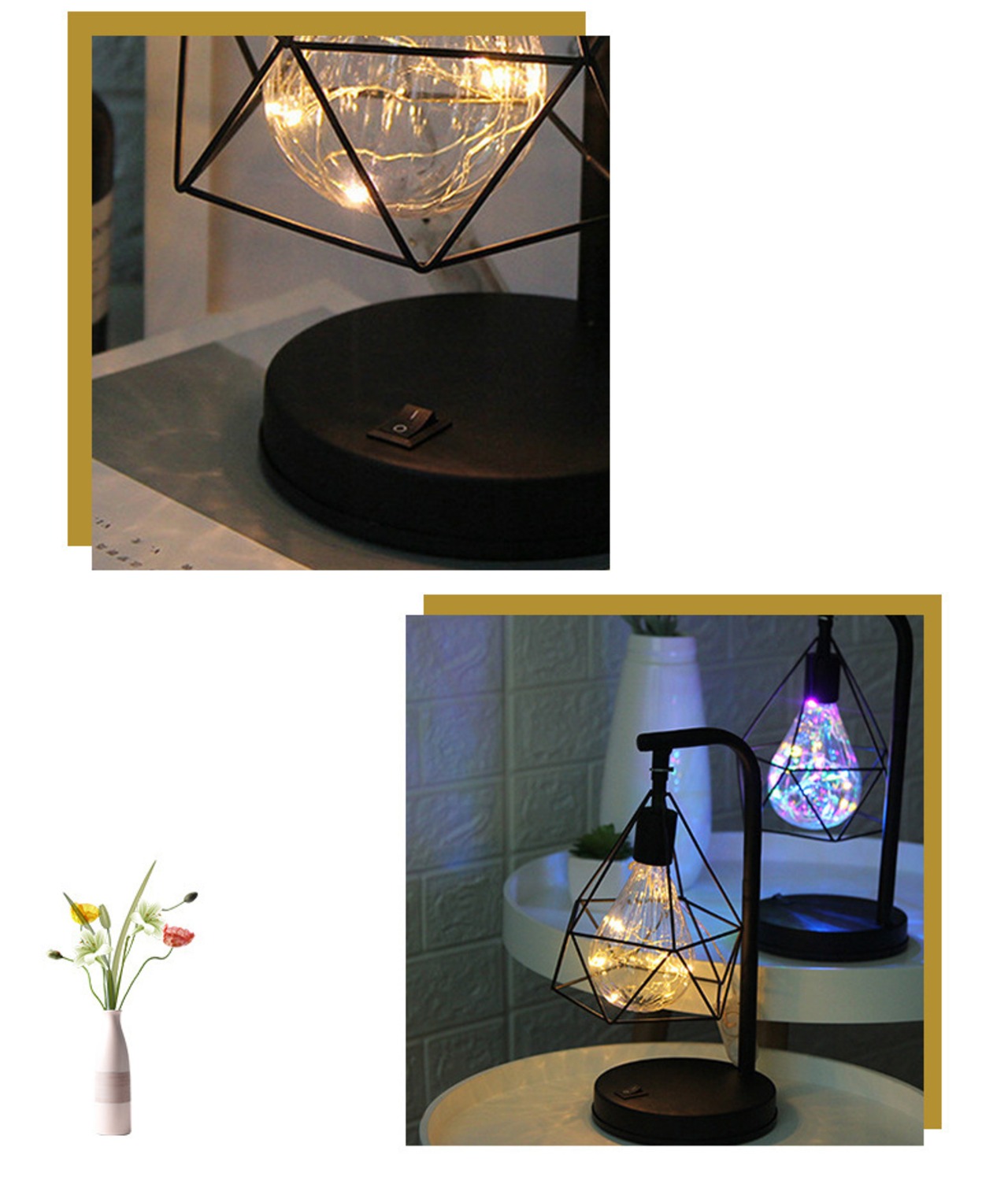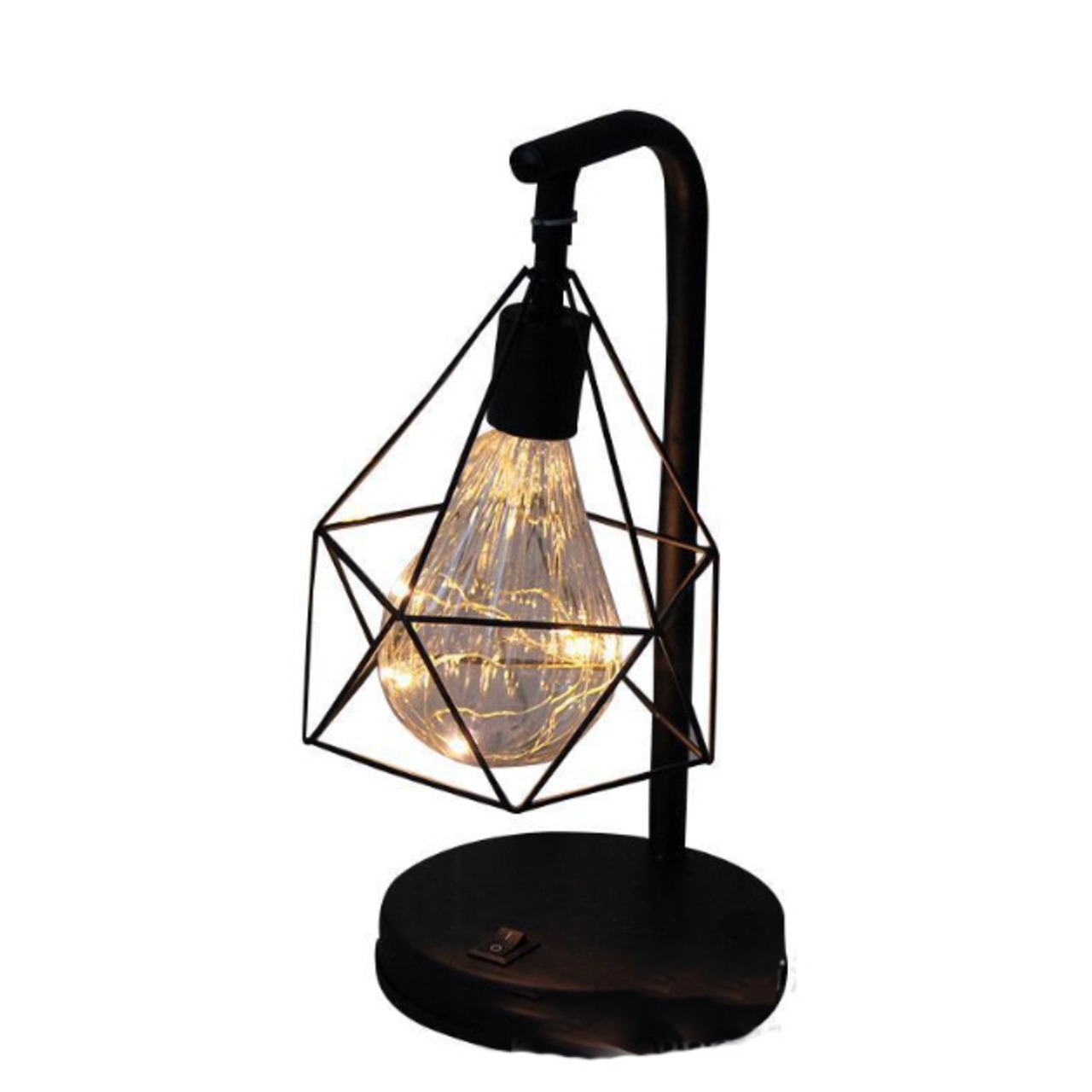 アイアンランプスタンド 装飾花瓶 ナイトライト ロマンチック 中空ダイヤモンド形