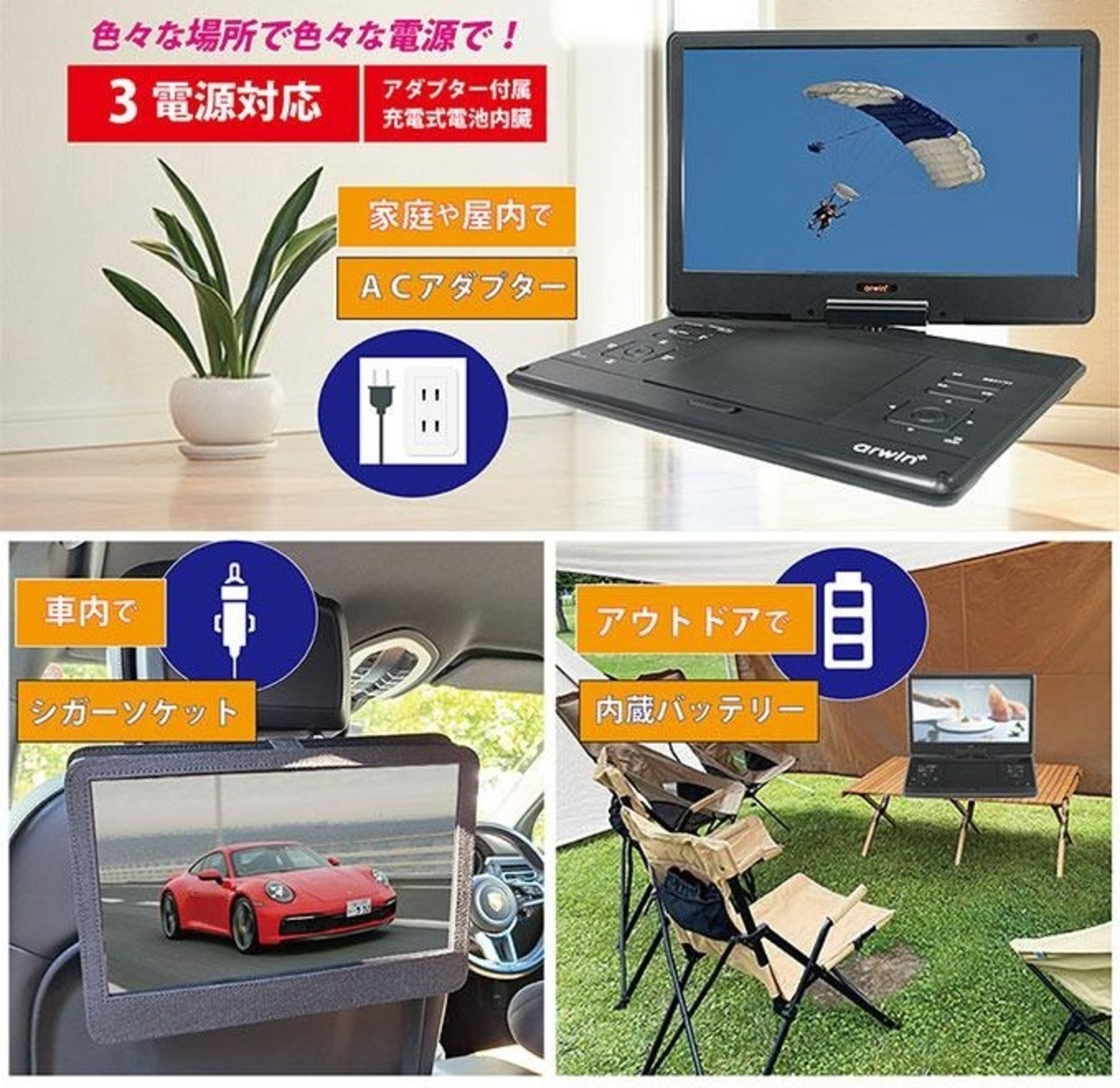 arwin DVDプレーヤー APD-143N 14型 ポータブル DVD マルチプレーヤー 14インチ 3電源対応 アーウィン