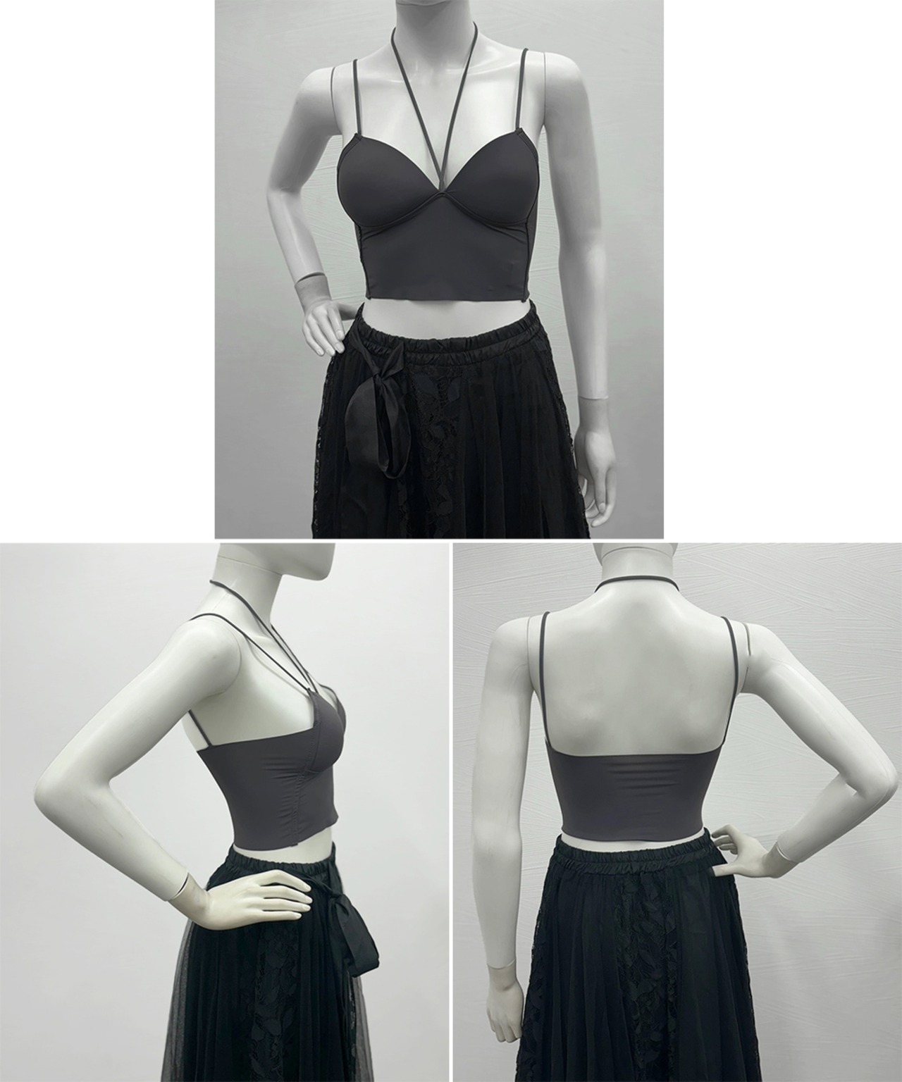 デコルテを美しく魅せる深Vネックのカップ付きキャミソールです