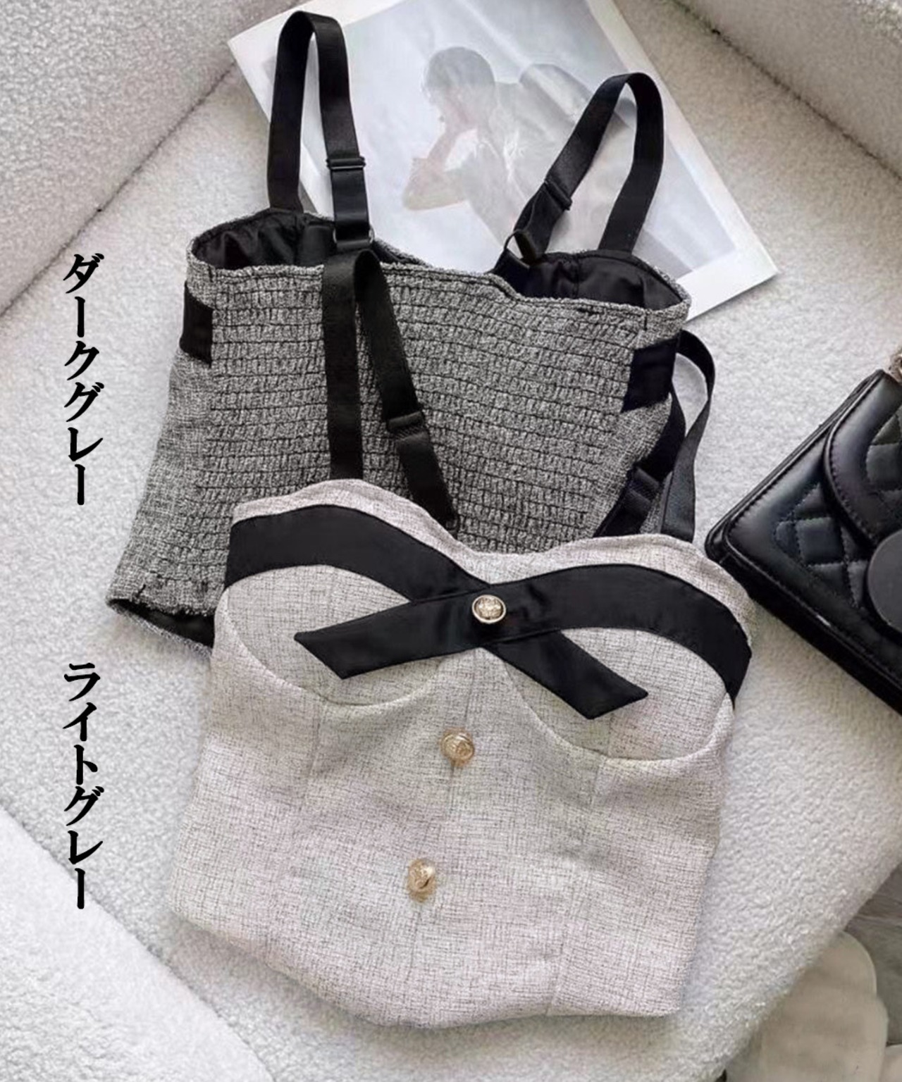 セクシーさと女子力を上げるツイード素材のキャミソールです。