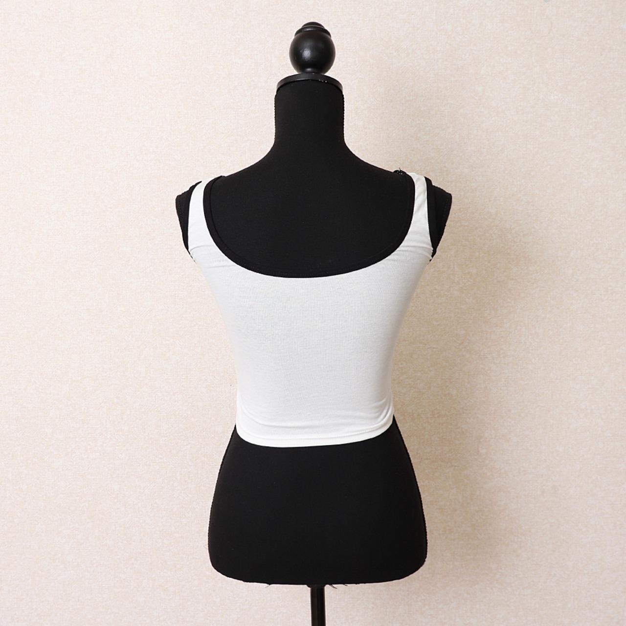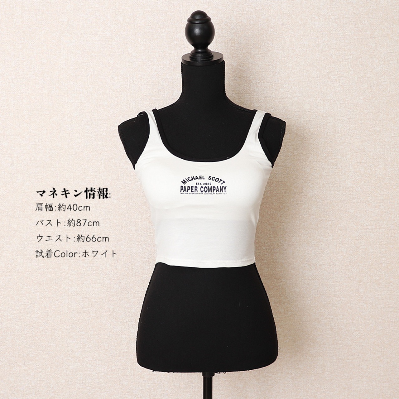 短め丈のカップイン仕様、胸元のロゴデザインがポイントのタンクトップ