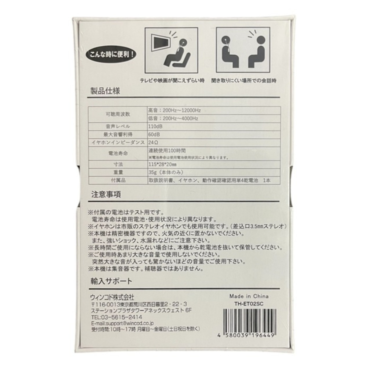TOHOTAIYO 集音器 軽量 小型 両耳用 縦型 極超高感度 左右音量調整 TH-ET02SC 取扱説明書 保証書付き