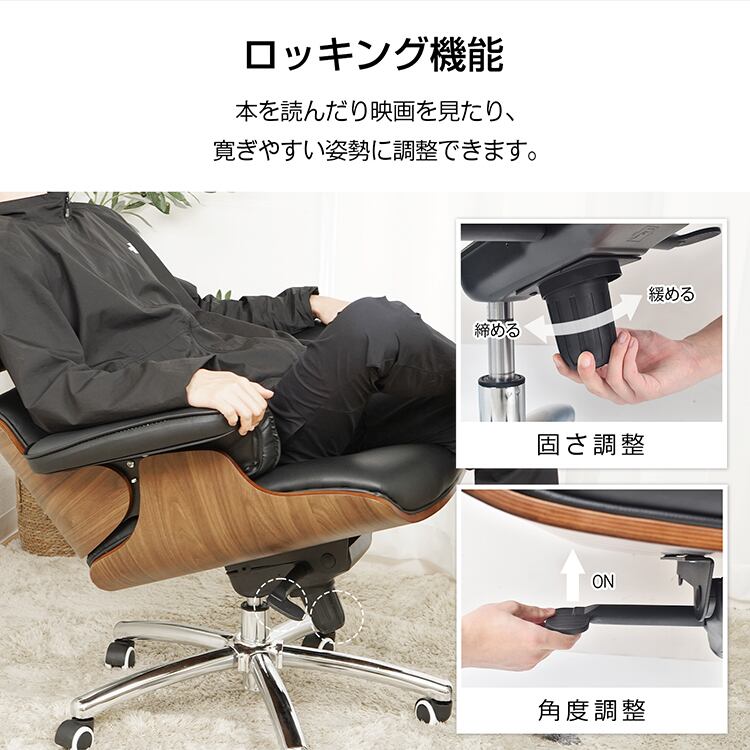 ラウンジチェア オットマン付き イームズチェア パーソナルチェア 肘付き ロッキング キャスター 昇降 本革