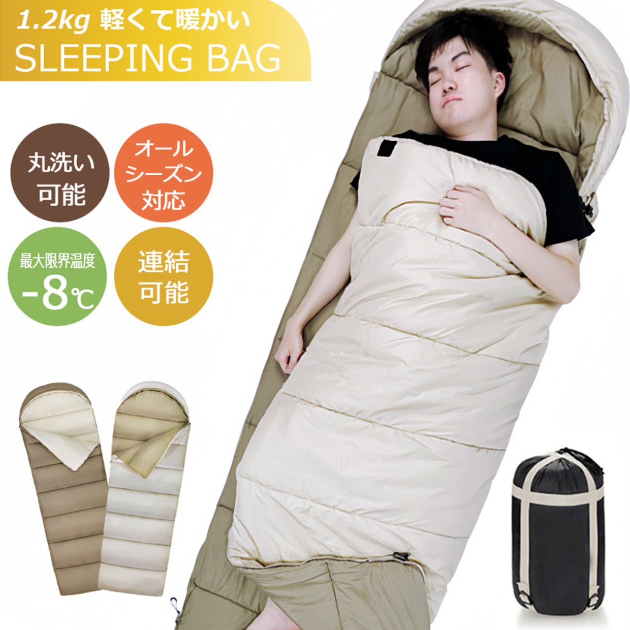 寝袋 シュラフ 洗える コンパクト 封筒型 軽量 -4℃ -4度 夏用 冬用 ふんわり 防災 寝袋 マット 洗える