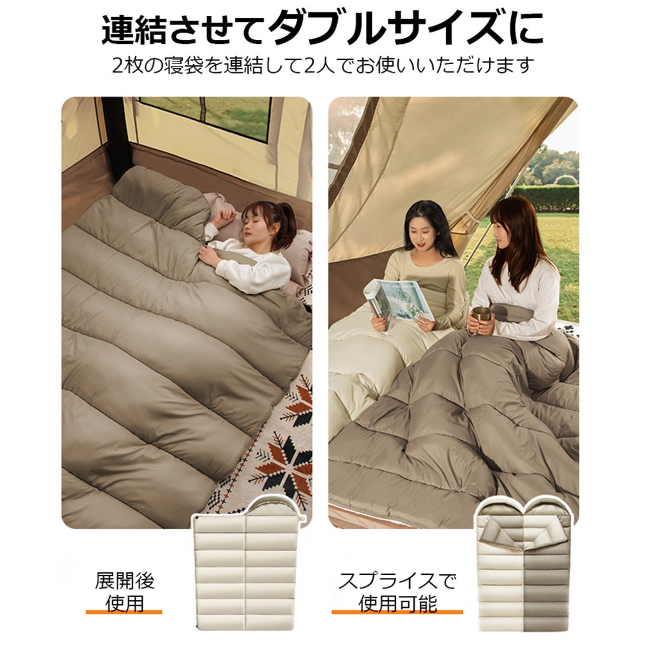 ひざを自由に曲げることもでき、寝返りもできます!ジッパーを開けた後、封筒型寝袋はキルトとして使用できます。