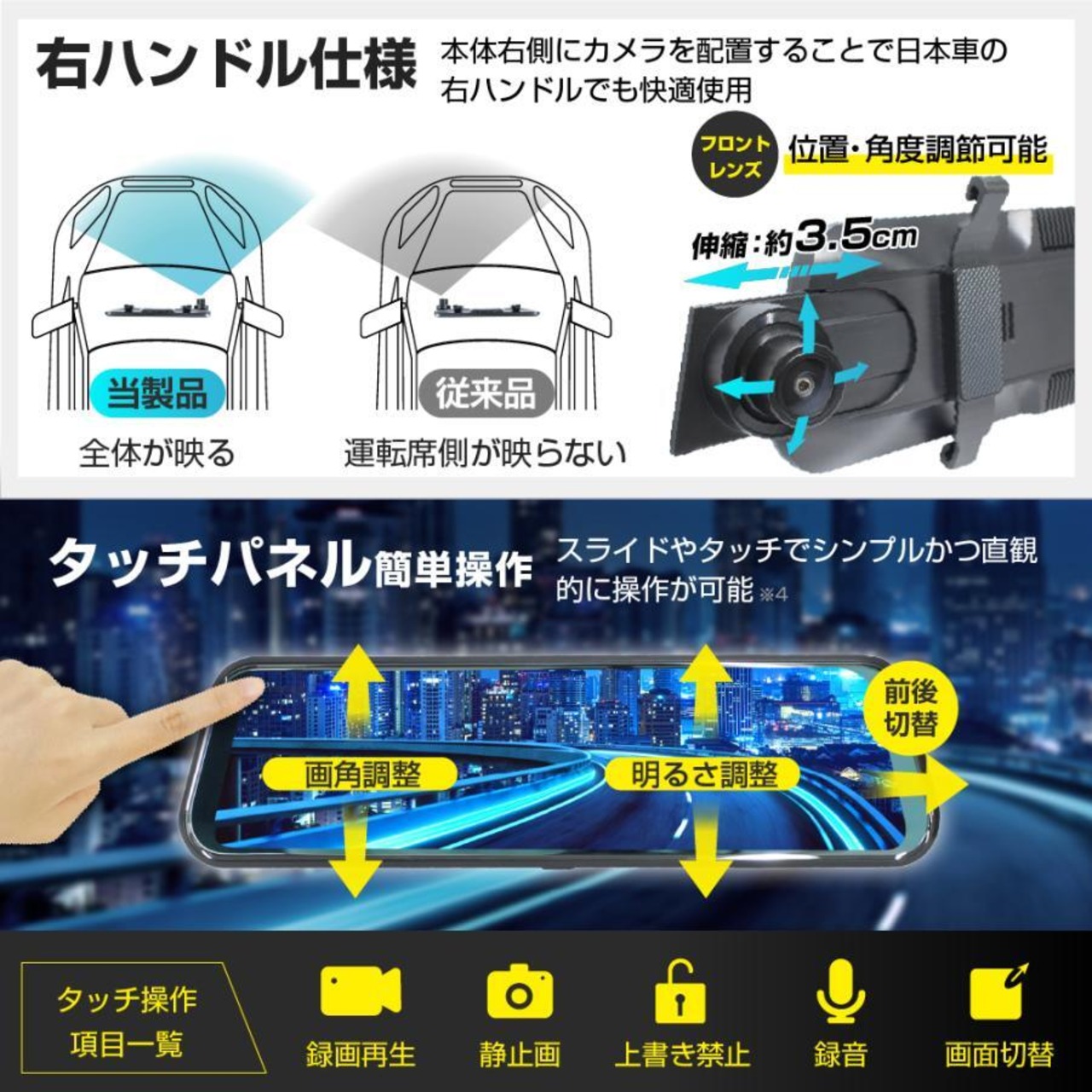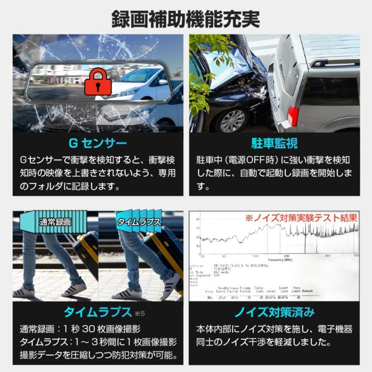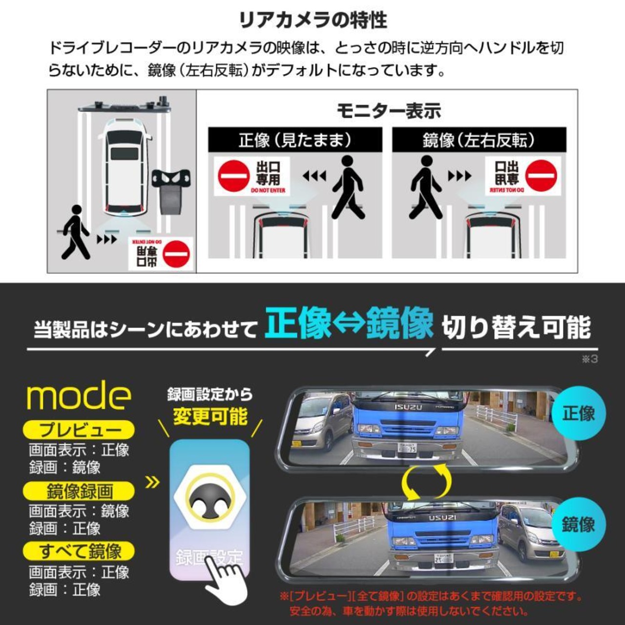 ドライブレコーダー ドラレコ 前後同時録画 バックミラー ルームミラー カメラ ミラー一体型 ミラー型