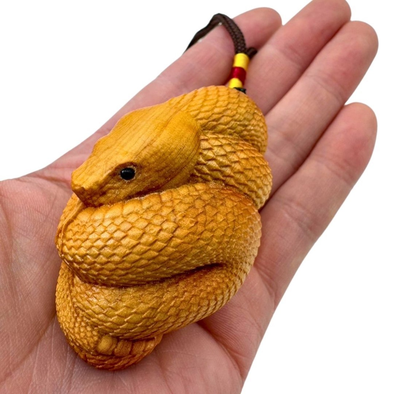 開運 キーホルダー 蛇 木製 彫刻 とぐろを巻く蛇キーホルダー 巳のお守り