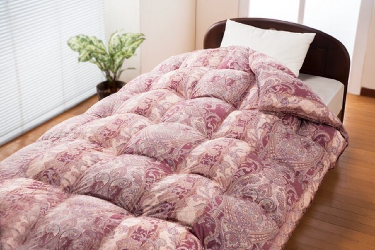 ●いつでもふんわり暖かな「立体キルト加工」:約10cm移動防止立体キルト。羽毛の片寄りと空気漏れを防ぎ、暖かな空気層を均一に保ちます。なのでいつでも暖かく、ふんわり軽い掛け心地。