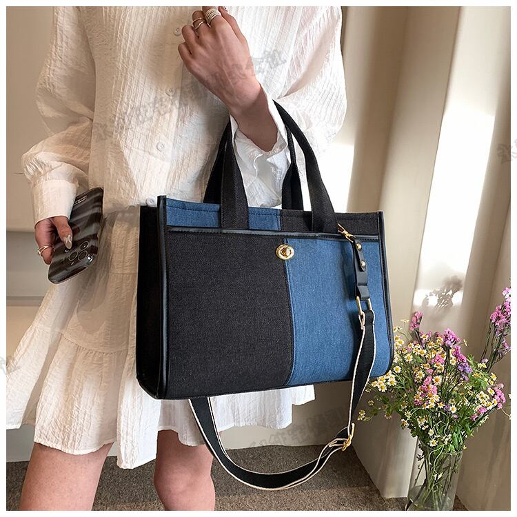 2024年最新ファッションの高品質な切り替えデニムトートバッグです。