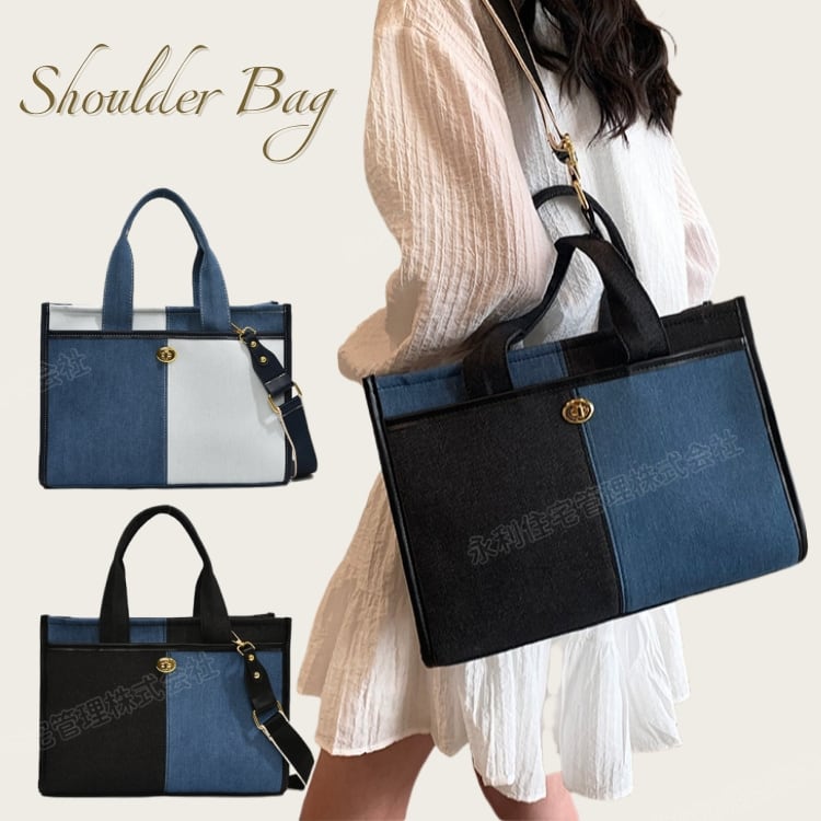【全3色】ショルダーバッグ バッグ カバン 鞄 切り替え デニム 大容量 相性 気品 オシャレ 通勤 2way