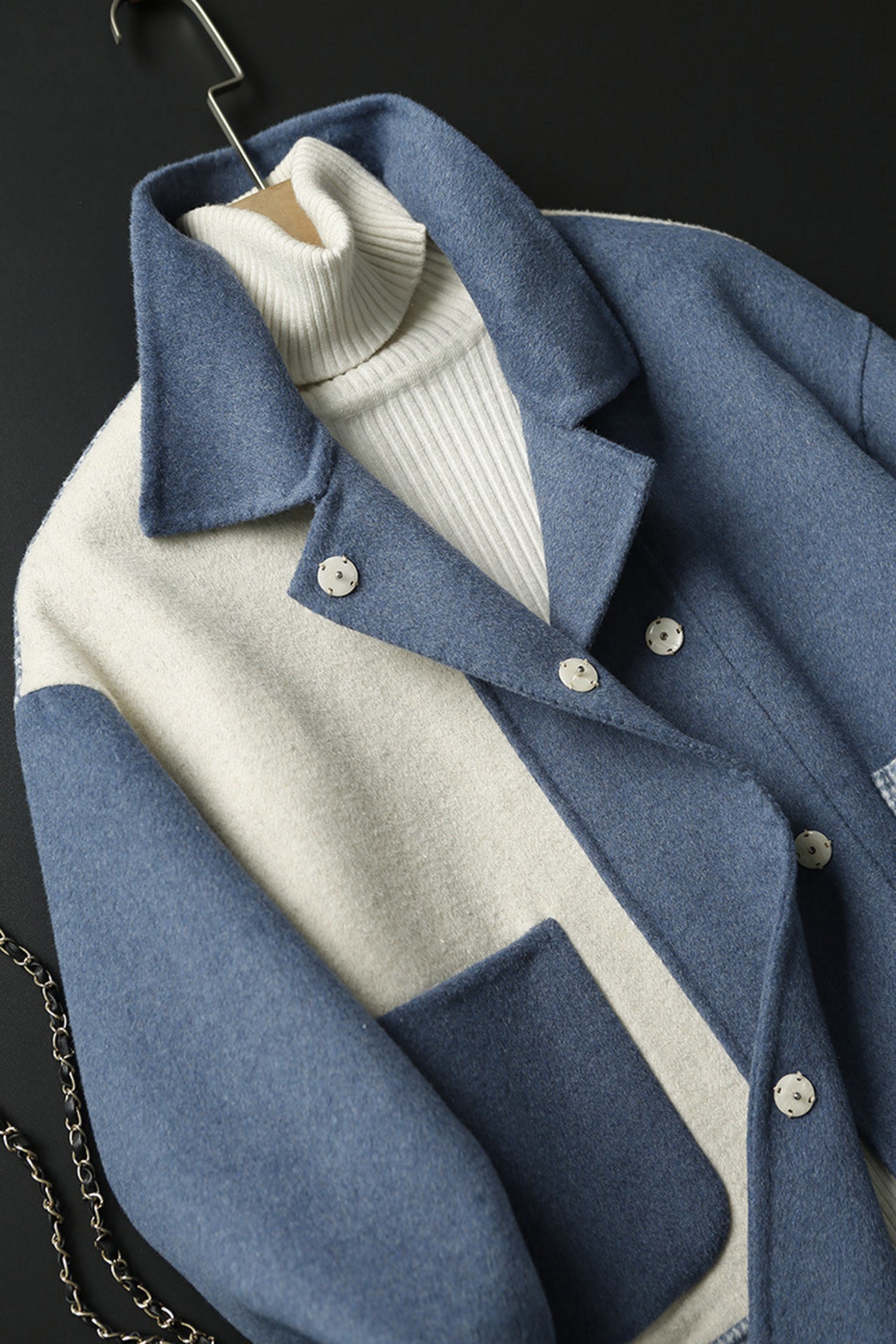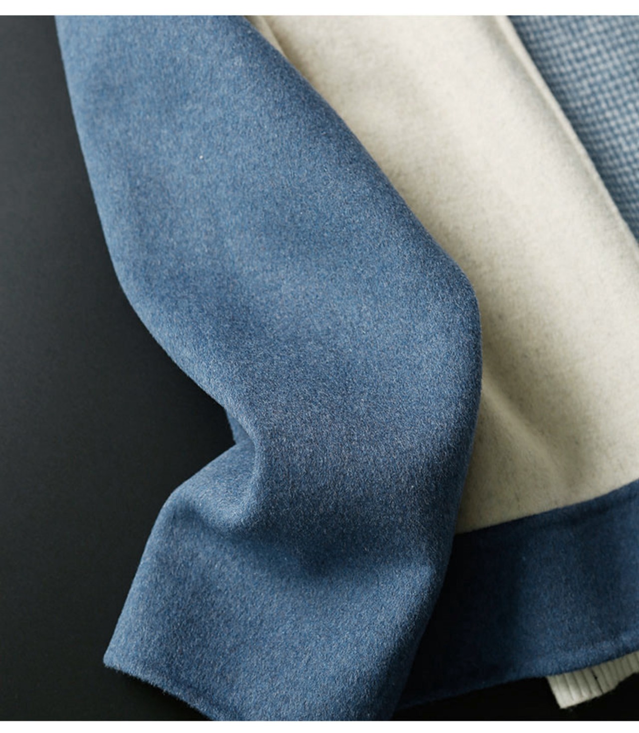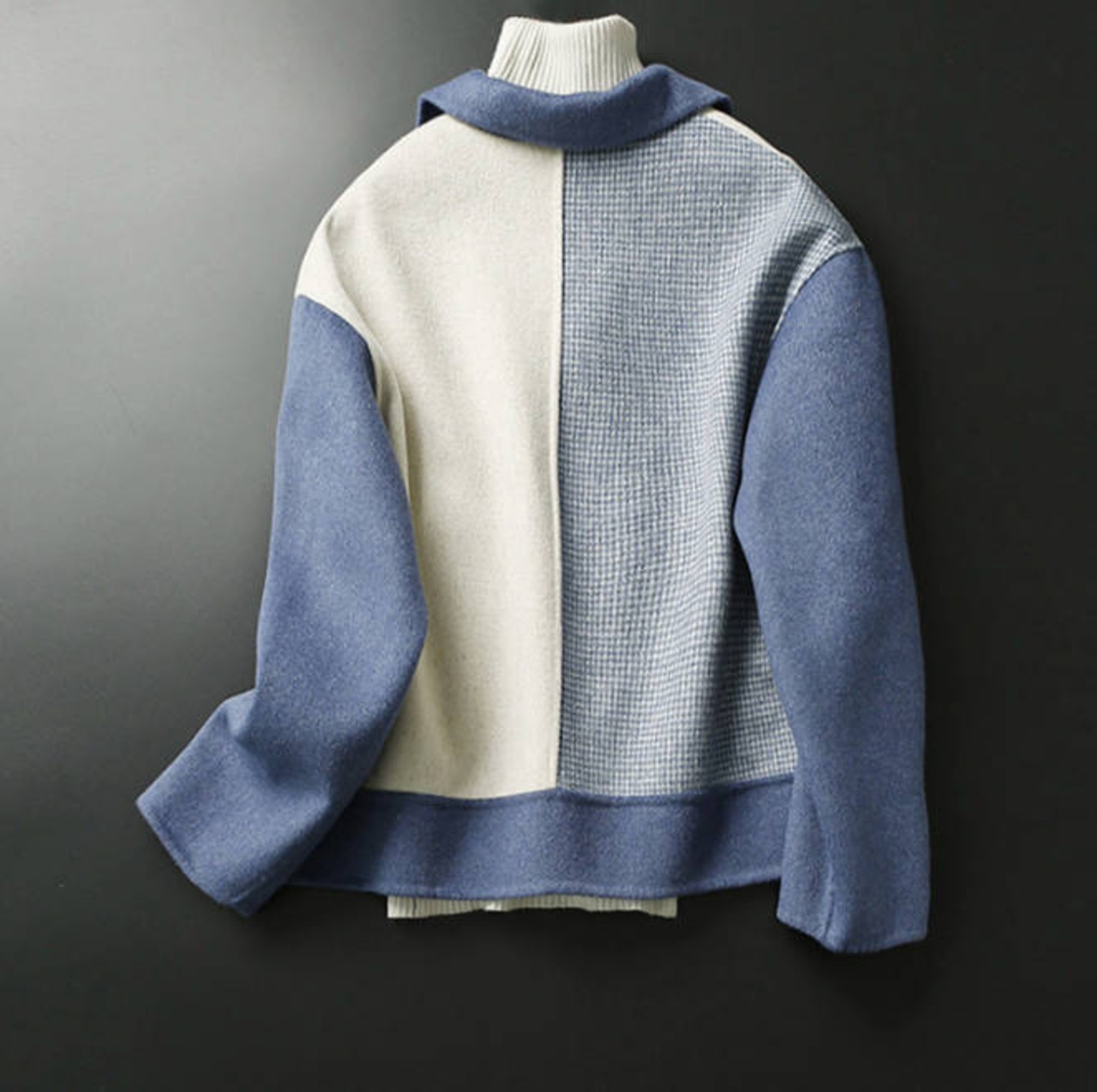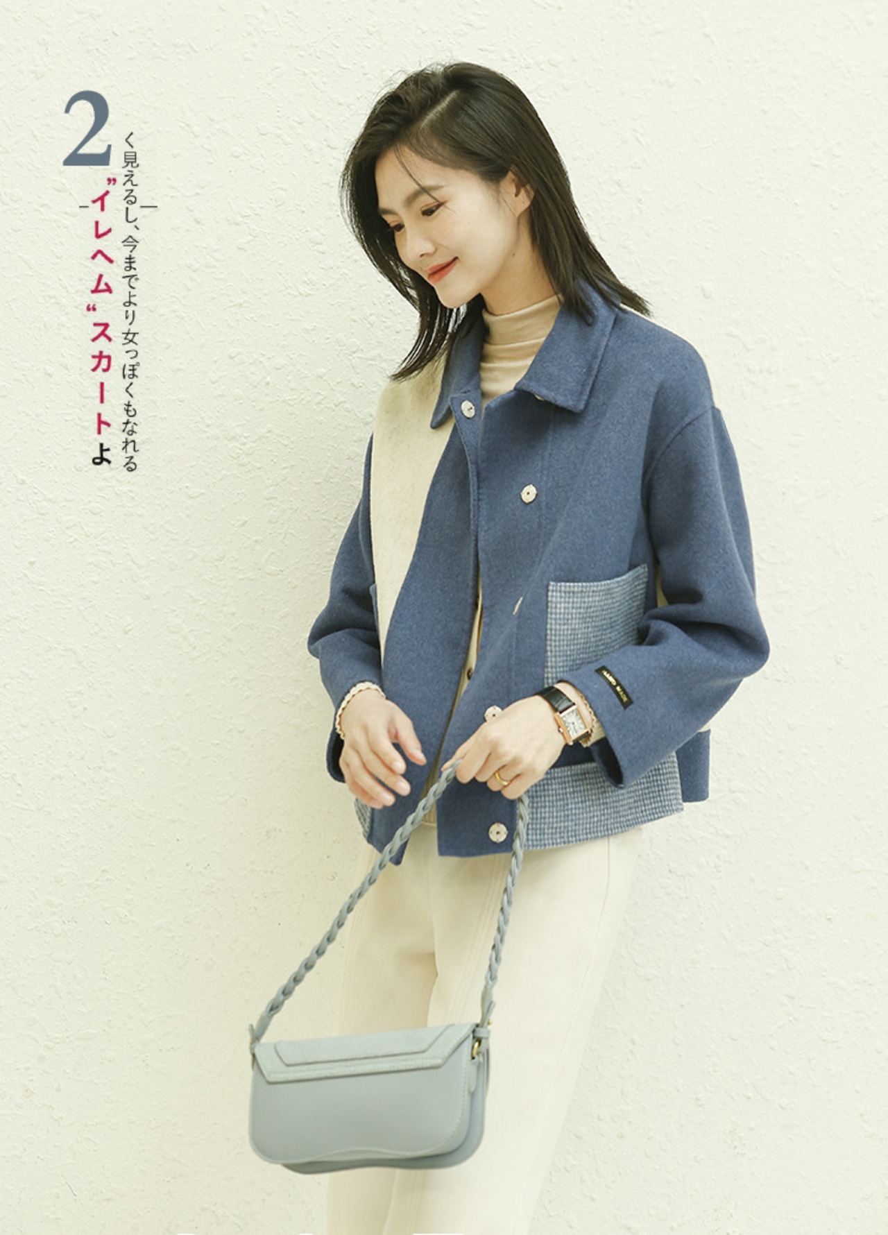 2024年秋冬にぴったりの短丈ウールコートが登場しました。特徴的なバイカラーとチェック柄のデザインが、シンプルながらも個性的なスタイルを演出します。ダブルフェイスウール素材を使用し、柔らかな着心地と優れた保温性を兼ね備えています。