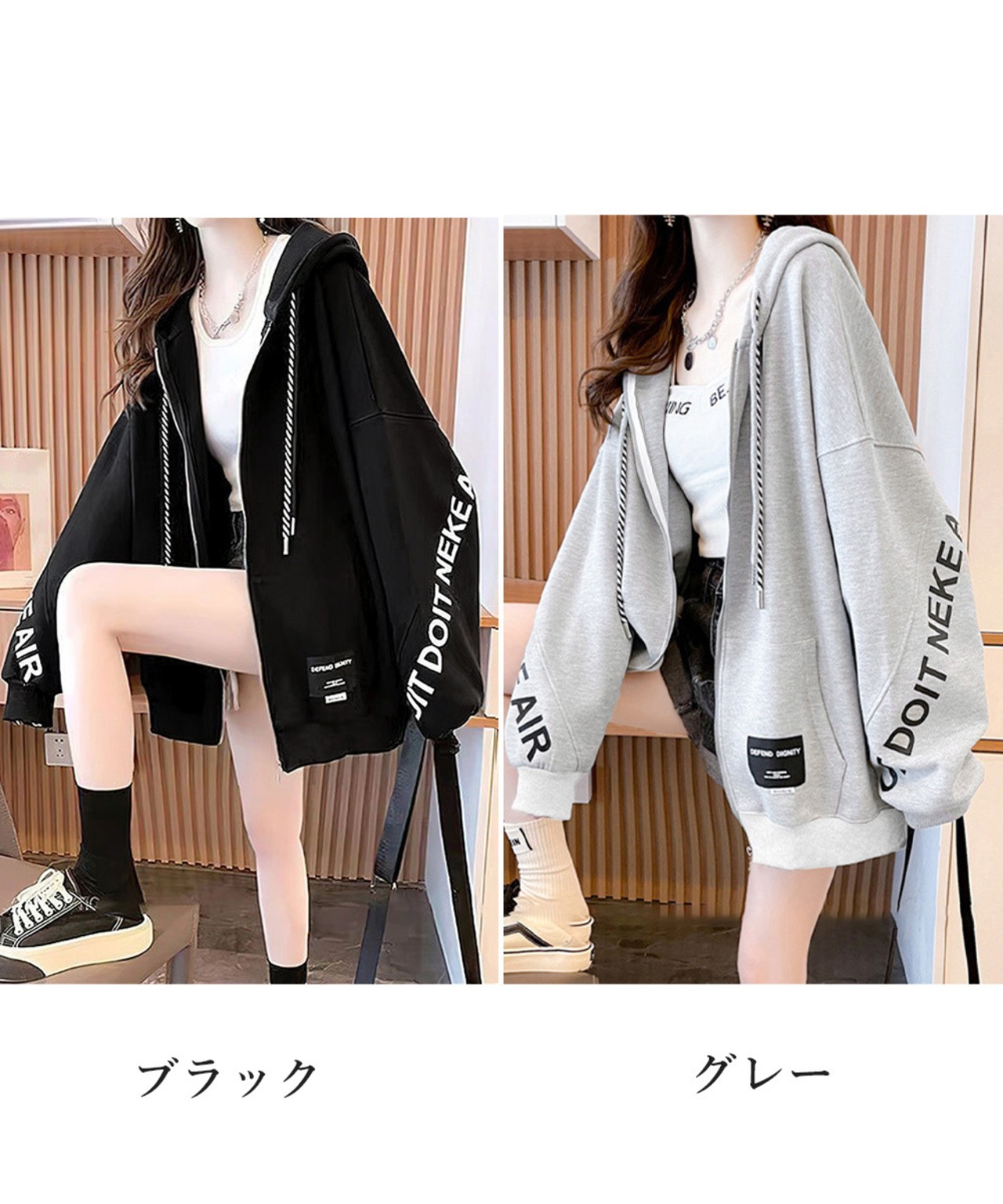 暖かい長袖トップス ロゴ羽織り 着やせ ゆったり パーカー
