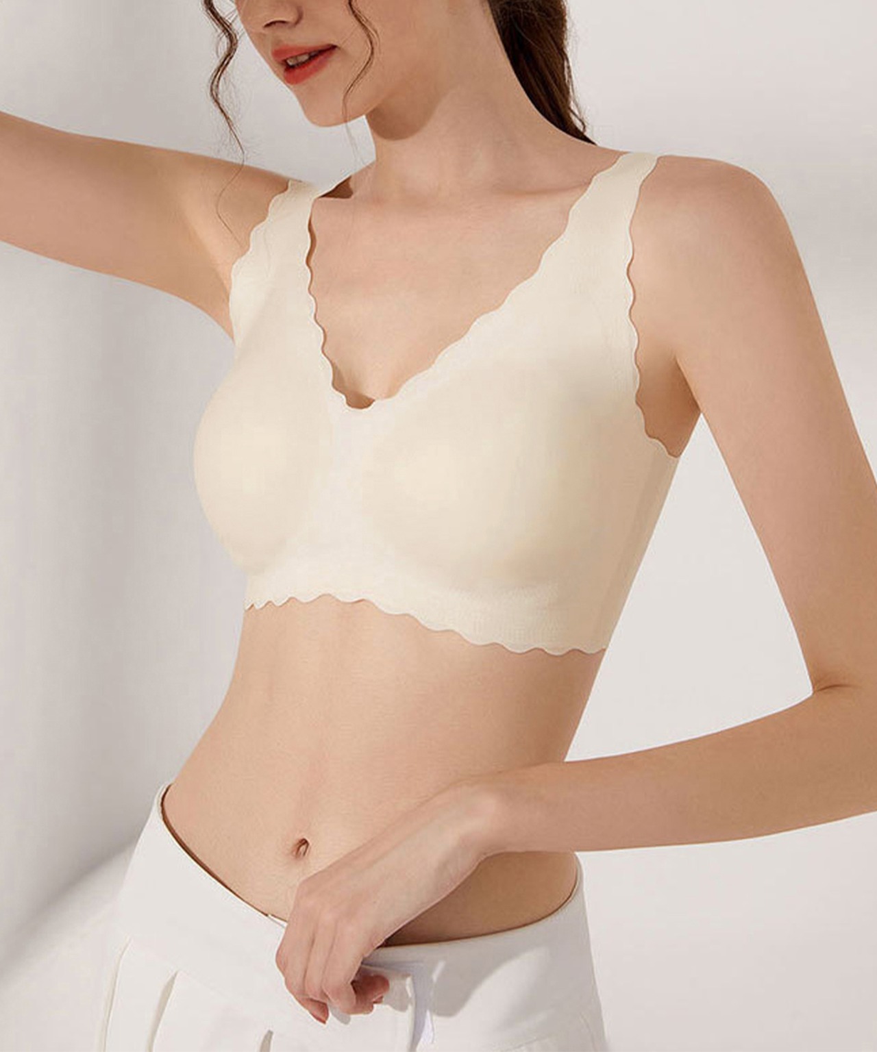 スカラップ縁は動いても捲れないから、一日中着ていても楽ちん&快適