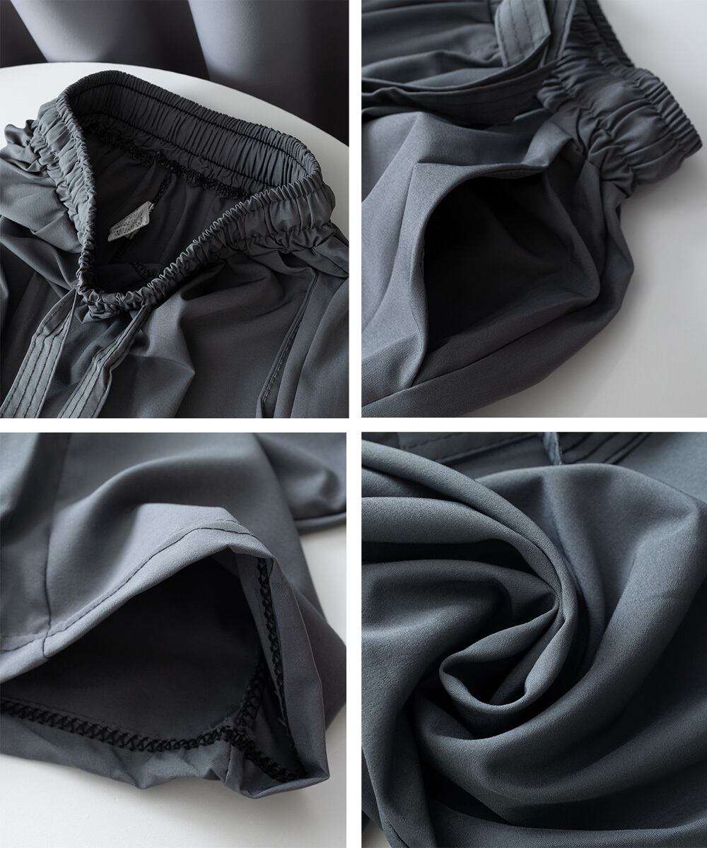 ウエストゴム仕様、さらに紐で調節できるのでお好みに合わせてストレスフリーなはき心地