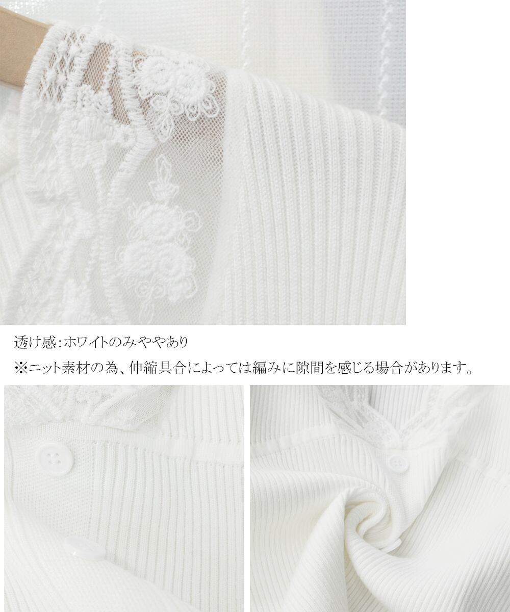 首元はVネックで、レースの切り替えがさりげないアクセントに