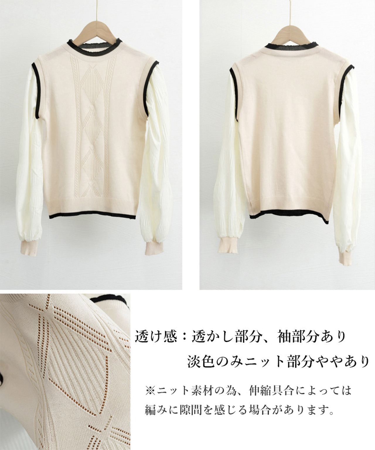 透け感:透かし部分、袖部分あり/淡色のみニット部分ややあり