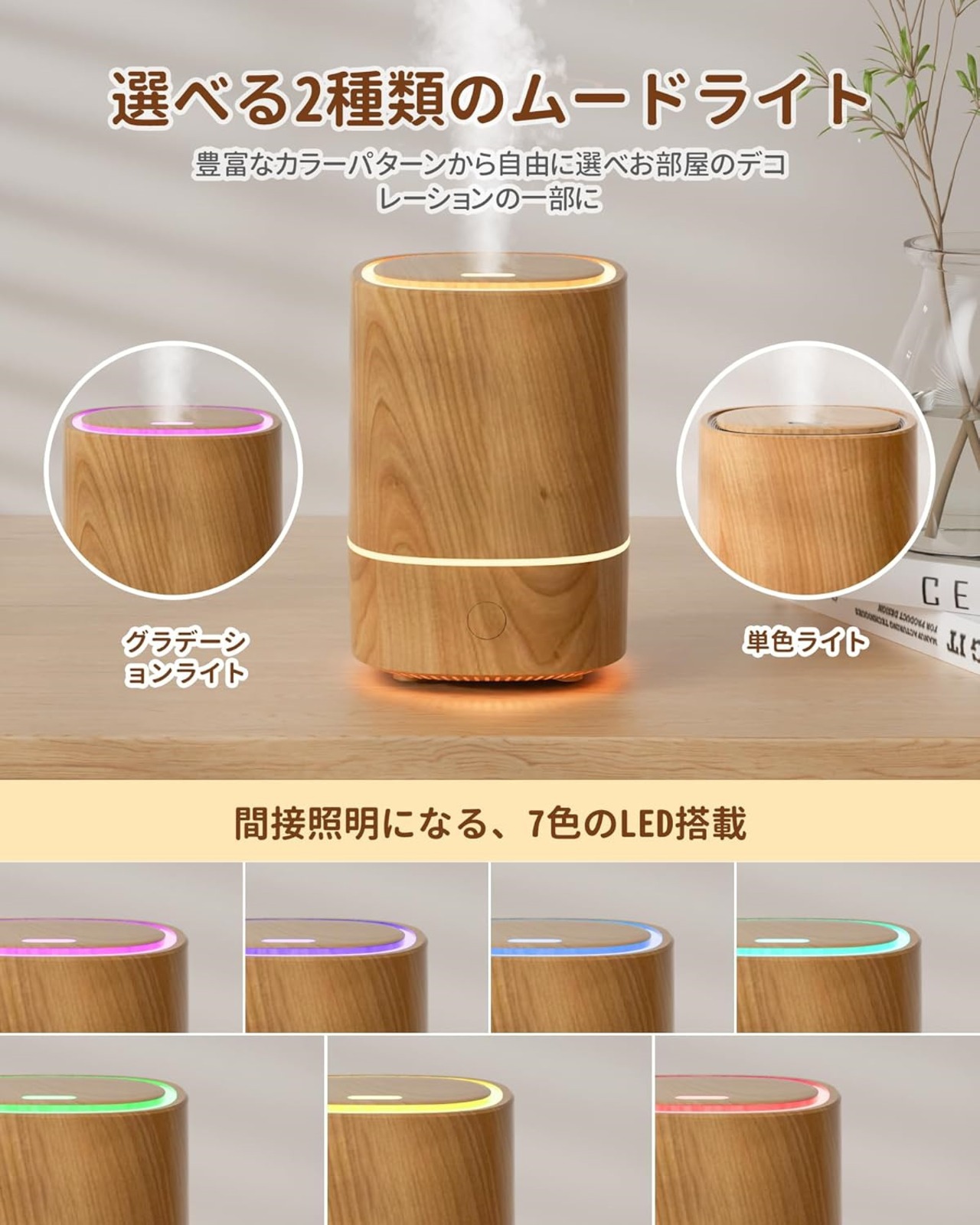 【2024発売新モデル加湿器&一台多役】香りと潤いを同時に楽しめる、加湿器としてもアロマディフューザーとしても使える多機能な超音波加湿器です。エッセンシャルオイルを加えず、水を加えるだけで、お部屋を加湿し、季節の変わり目による乾燥を和らげ、空気の湿度バランスを整える加湿器として使用できます。お好みのエッセンシャルオイルを加えてアロマディフューザーとしても使え、潤いと優しい香りの相乗効果で心身をリラックスさせます。快適で落ち着いた雰囲気を作り出し、眠りをサポートします。