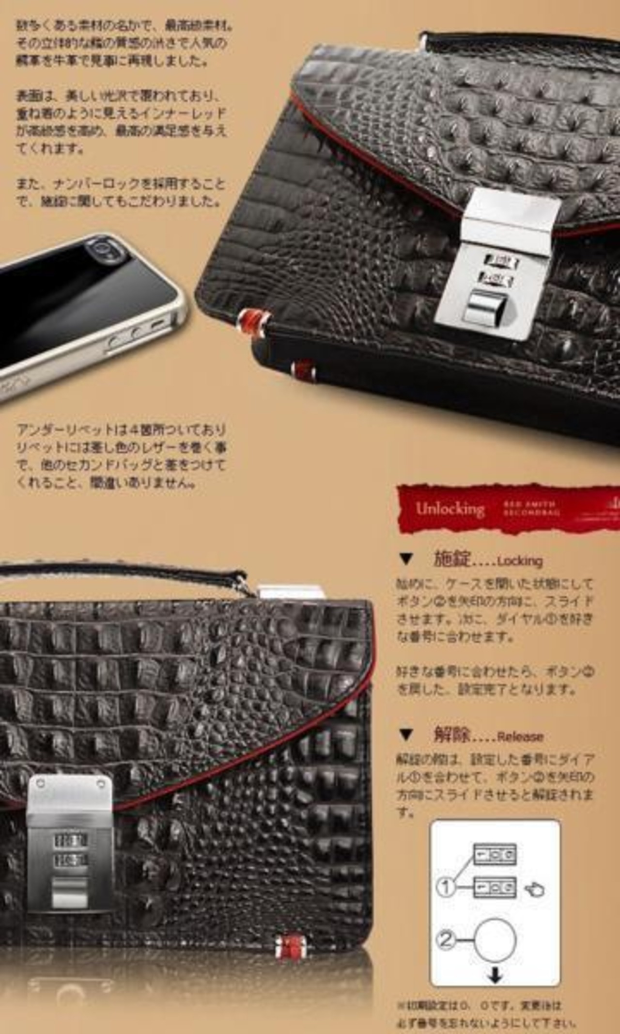 RED SMITH 牛革リアルクロコダイル型押し 背面財布機能付き ミニセカンドバッグ