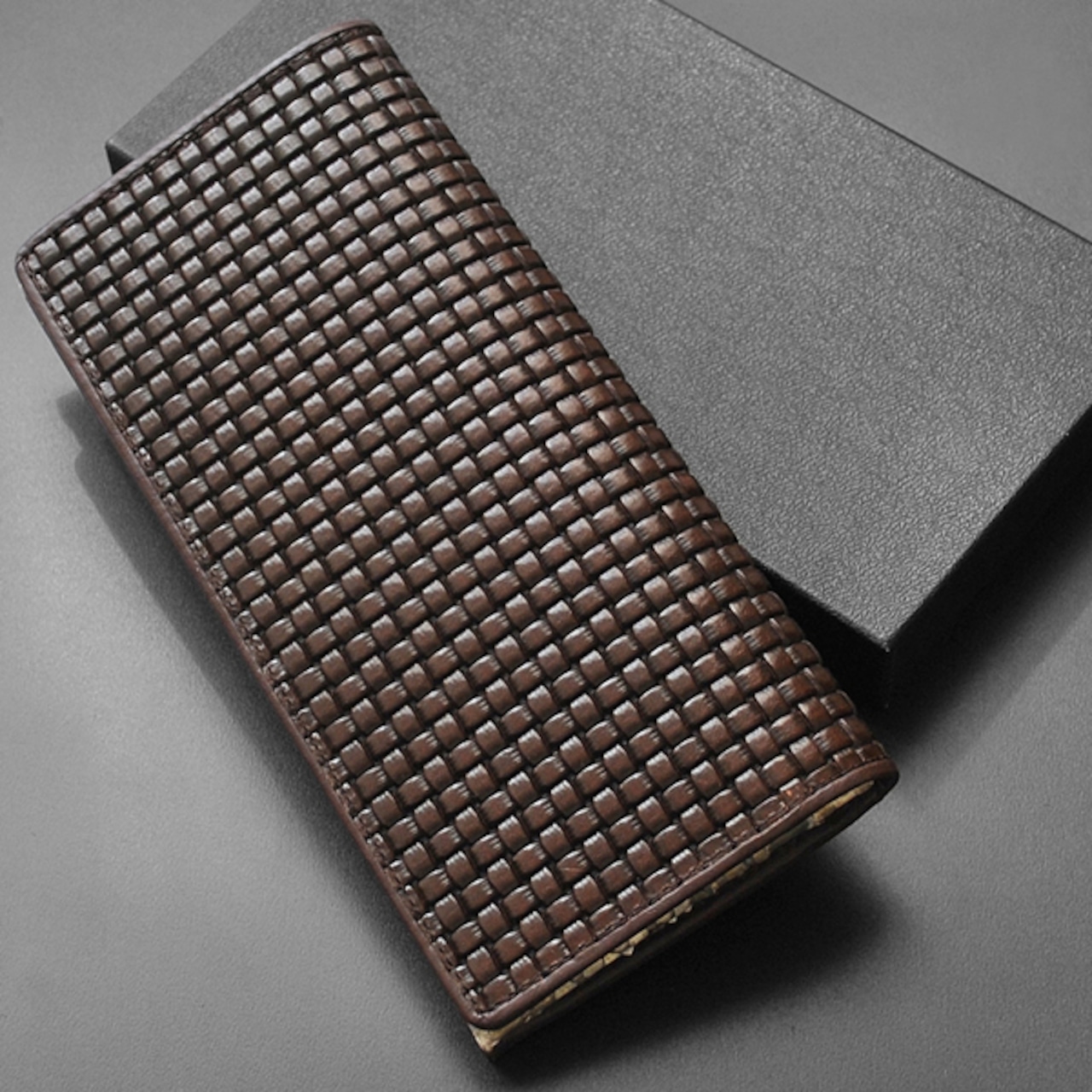 高級牛革にメッシュの型押しがシックな印象の長財布。