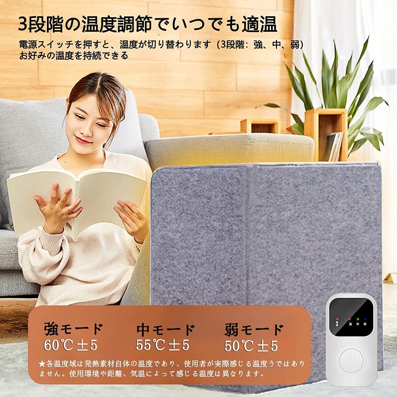 【3段階温度調節】この足温ヒータの側面3面にヒータを内蔵し、PTCセラミックスという高電熱変換率材料を採用し、ただ10秒で急速に暖かくなる、三段階温度調整ができる(強モード:60±5℃、中モード:55±5℃、弱モード:50±5℃)、温度はお好みで自由に調節できます。付属の布団を使って、この冬をもっと暖かしましょう!
