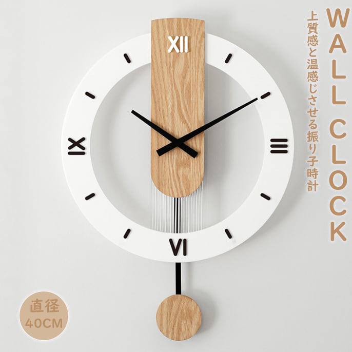 壁掛け時計 軽量 木目調 クリア 壁時計 北欧 振り子時計 丸い ラウンド 円形 浮き彫り 文字盤
