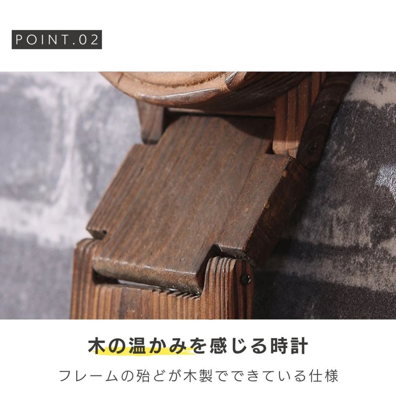 大きめサイズの時計ですので自宅でも店舗でも存在感を出してインテリアに溶け込んでくれます。しっかりした印象を与えつつ気取りすぎない落ち着いたデザインは、ほかのインテリアの邪魔をせず、どんなお部屋にも合う優れもの。シンプルながら深みのあるデザインと色合いがとてもレトロな仕上がりになっています。