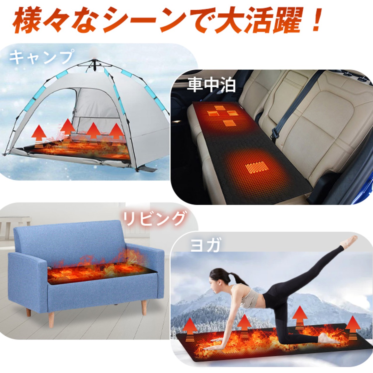 寝袋 電熱 マット キャンプ USB 電気 カーペット 発熱 パッド ホット シュラフ 洗える