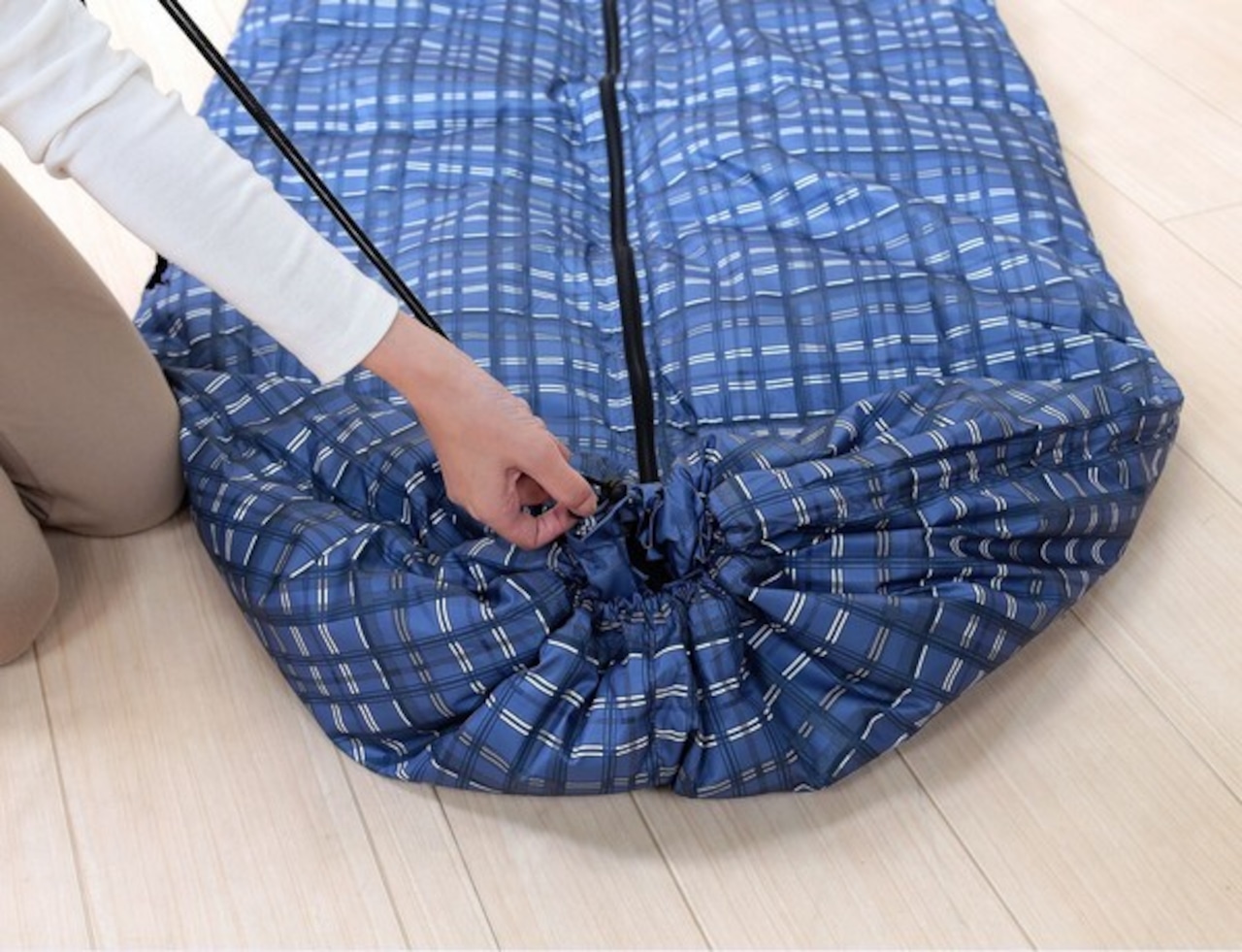 ●寝袋使用時はファスナーで簡単に閉じることができます。