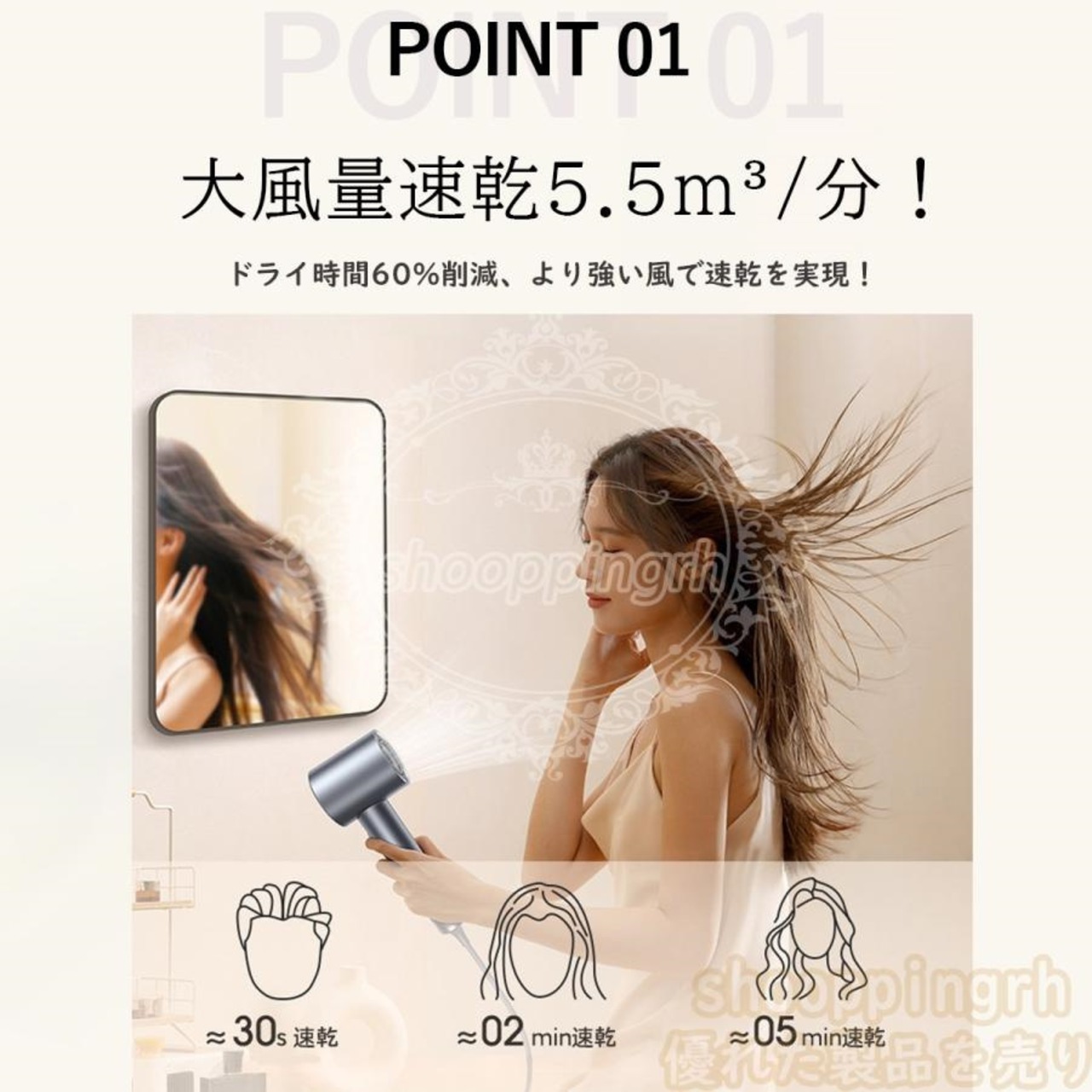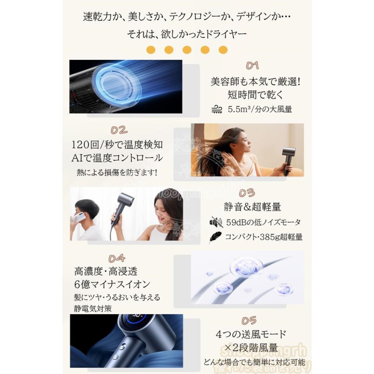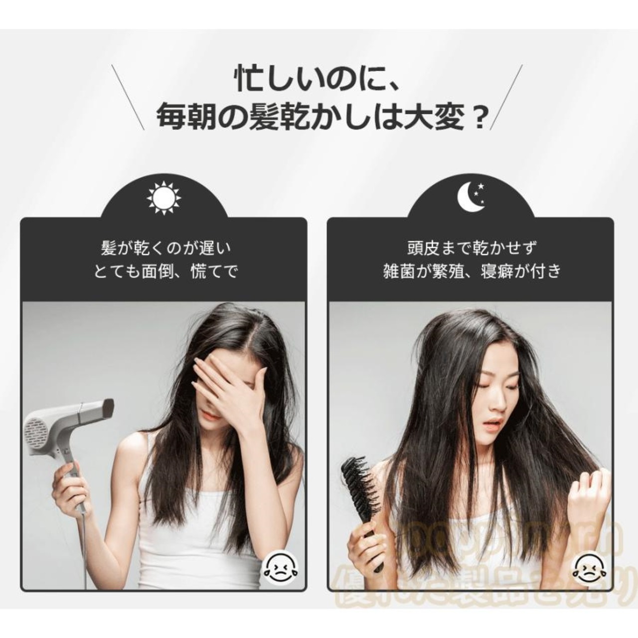 ドライヤー 大風量 速乾は最高回転数110,000rpmの高速ブラシレスモーターを搭載、ブースターチャンネルと連動して、高風速の気流を出します。 素早く髪表面の水分を除去し、ドライ時間60%短縮を実現します。