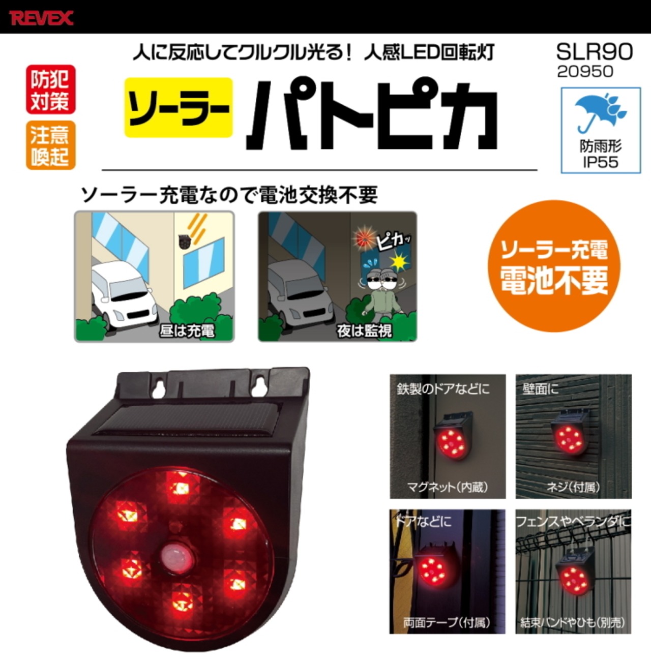 リーベックス REVEX 電池不要で侵入者を威嚇 ソーラーパトピカ SLR90