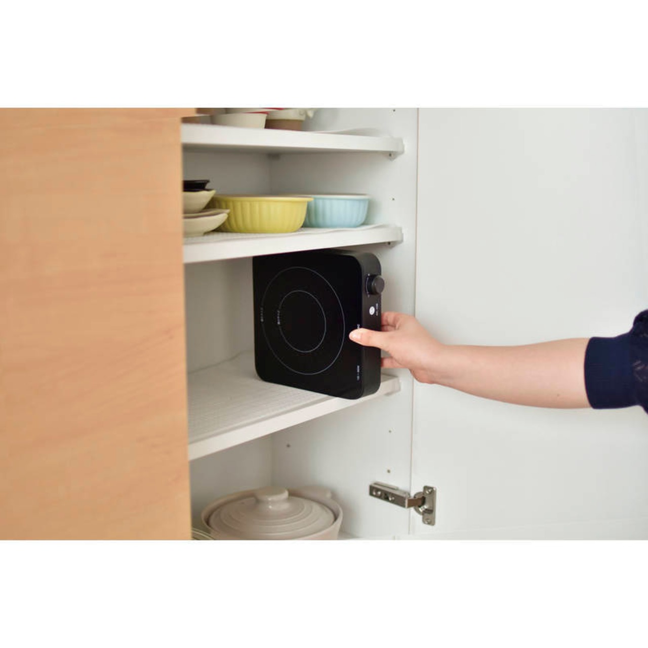 立てて棚にも収納可能 ガスコンロのようなダイヤル式!500mLのペットボトルより小さい本体サイズ・鍋底 約10~14cm対応可能 ※8cmは鉄瓶のみ使用可能・8段階の火力調節機能付き・一人暮らしやアウトドアなど色々な場面で使える・6つの安全設計・操作音・アラーム音のON/OFF