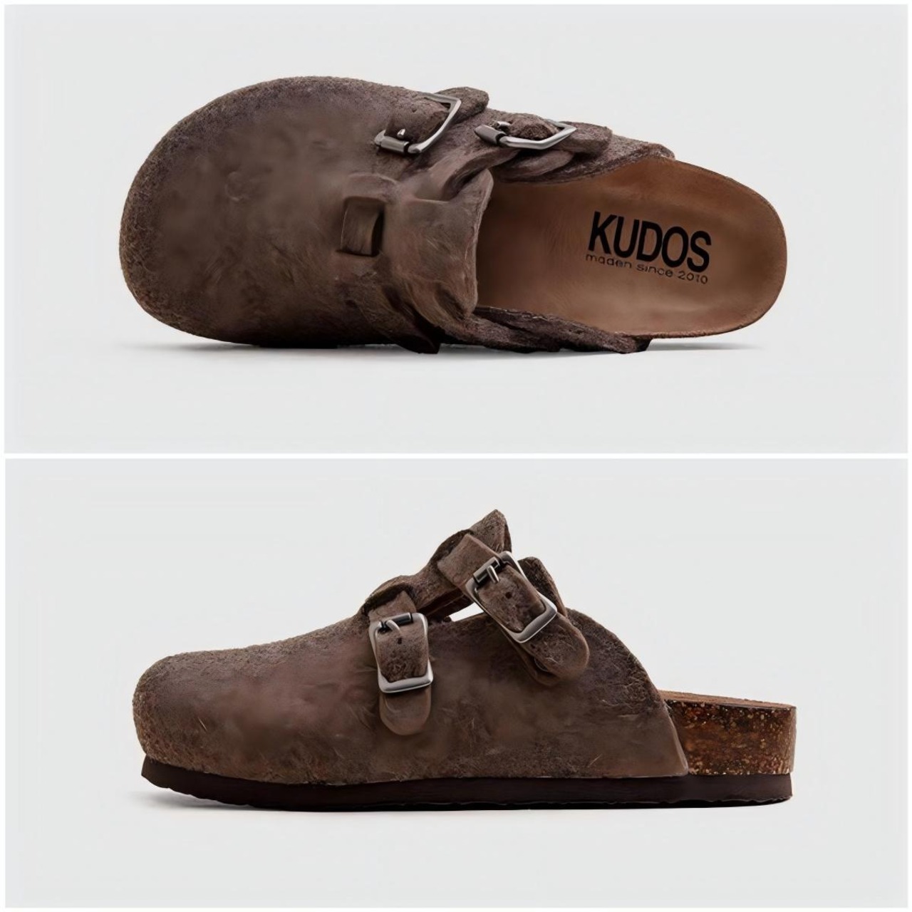 スリッポンタイプなので、脱ぎ履きが非常に楽です。コルクソールを採用しており、軽量で衝撃吸収性にも優れているため、長時間の使用でも足に負担がかかりません。足元から快適さを体感できます。