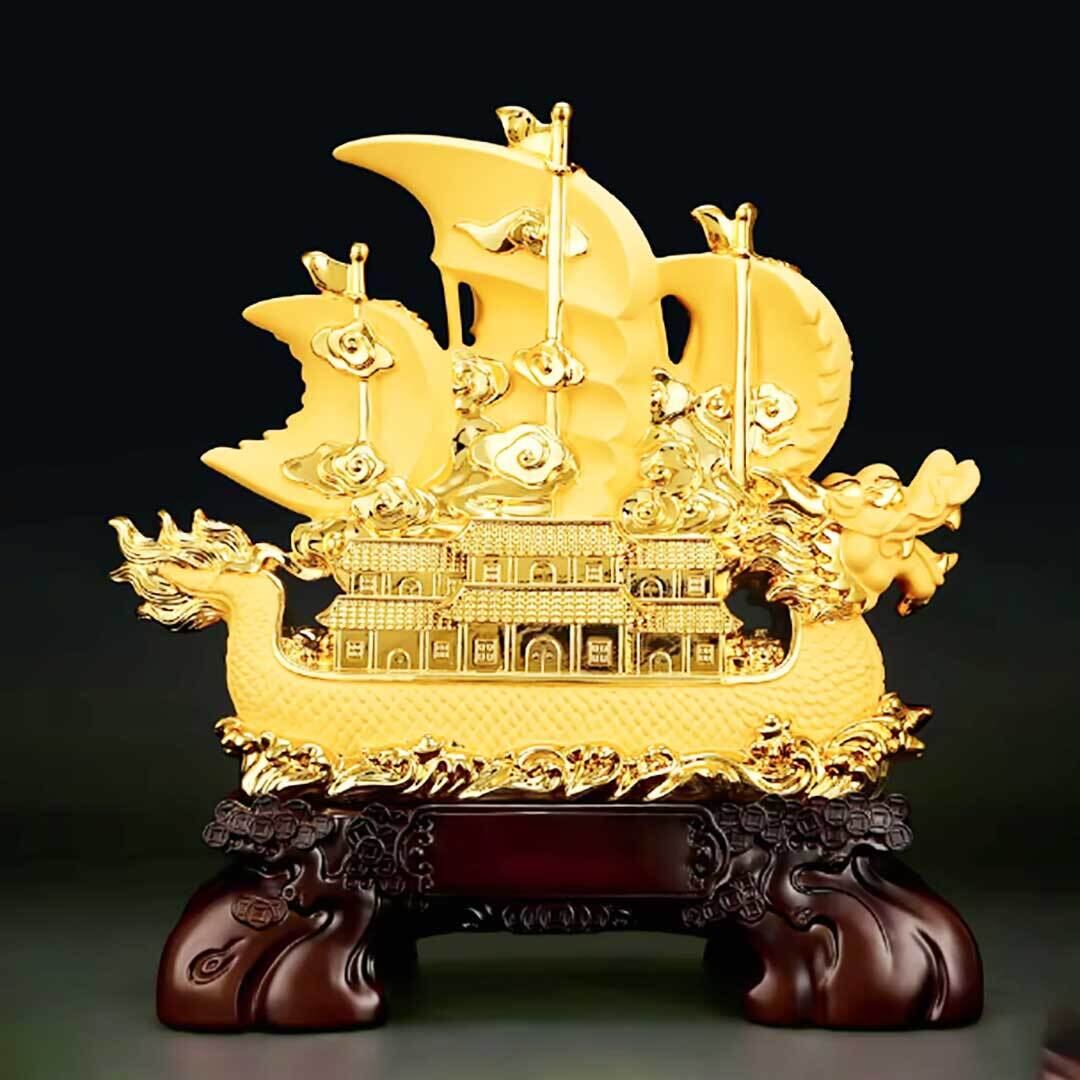 風水 ドラゴンボート ゴールド 宝船 置物 龍船 ドラゴンシップ 龍神 福 龍 竜 十二支 縁起物 おしゃれ