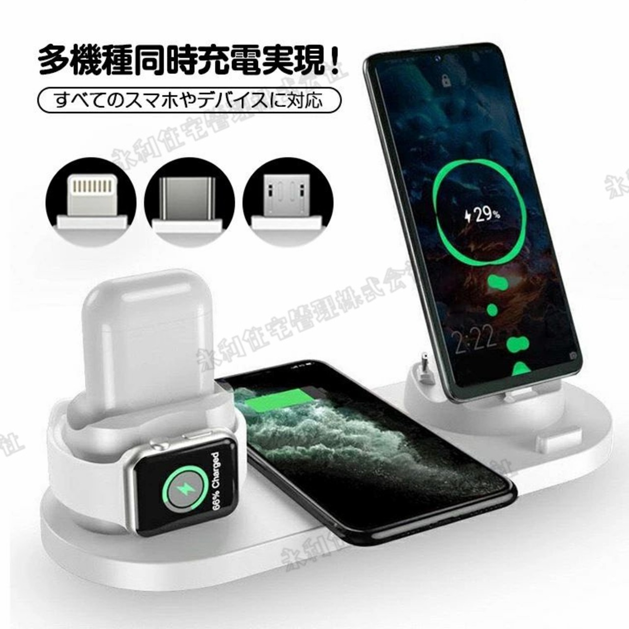 【2Colors】6in1充電器 ワイヤレス充電器 充電器 スマホ アップル ウォッチ ワイヤレスチャージ Type-C