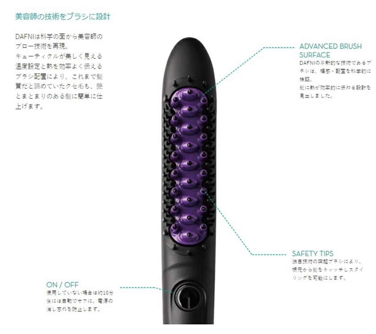 DAFNI muse 独自のセーフティーチップの配置と高さが髪をしっかりキャッチ。