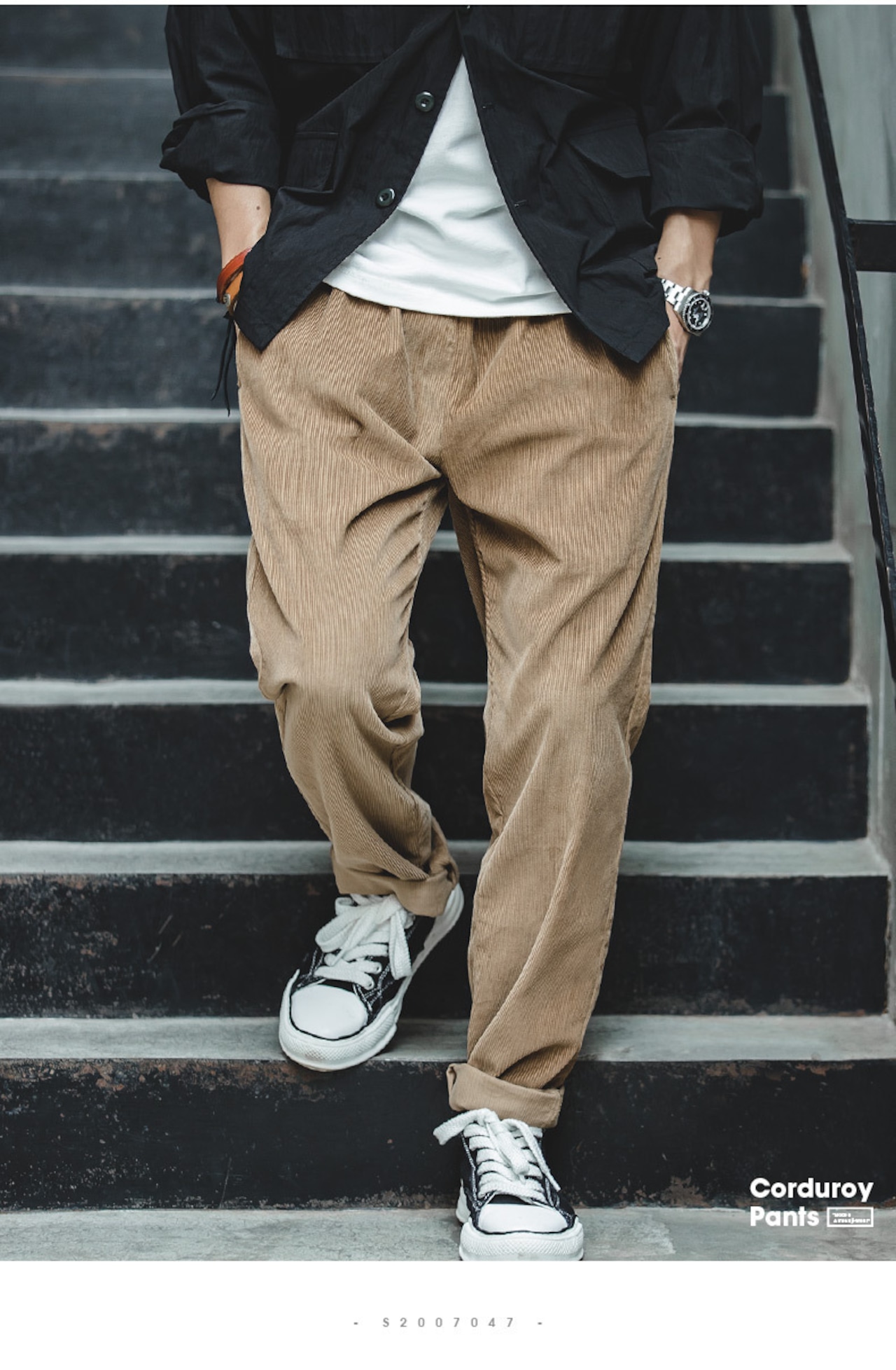 アメリカンヴィンテージ コーデュロイパンツ メンズ ワイドストレートカジュアルパンツ