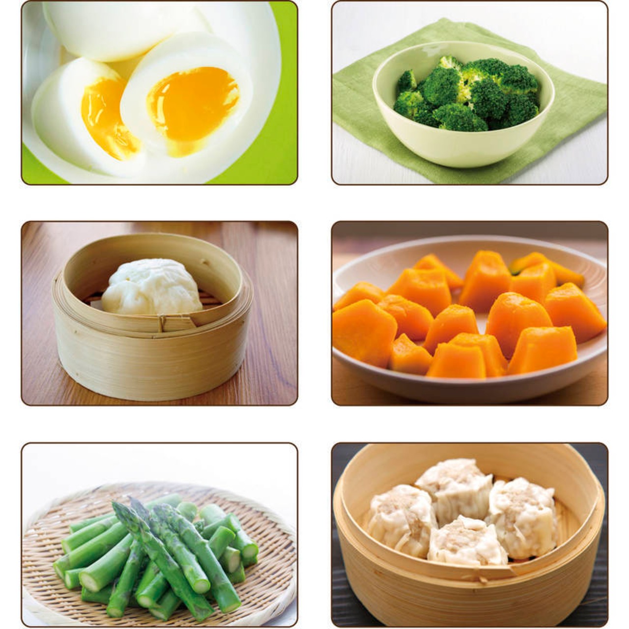 ゆで卵や蒸し料理を簡単に!【蒸す・温めるをこれ1台で】・とろとろ半熟・半熟・固ゆでをお好みに調理できるタイマー付。・ゆで卵は最大7個までつくれます。・ヘルシーで美味しい蒸し料理も簡単。・火を使わないから安心。