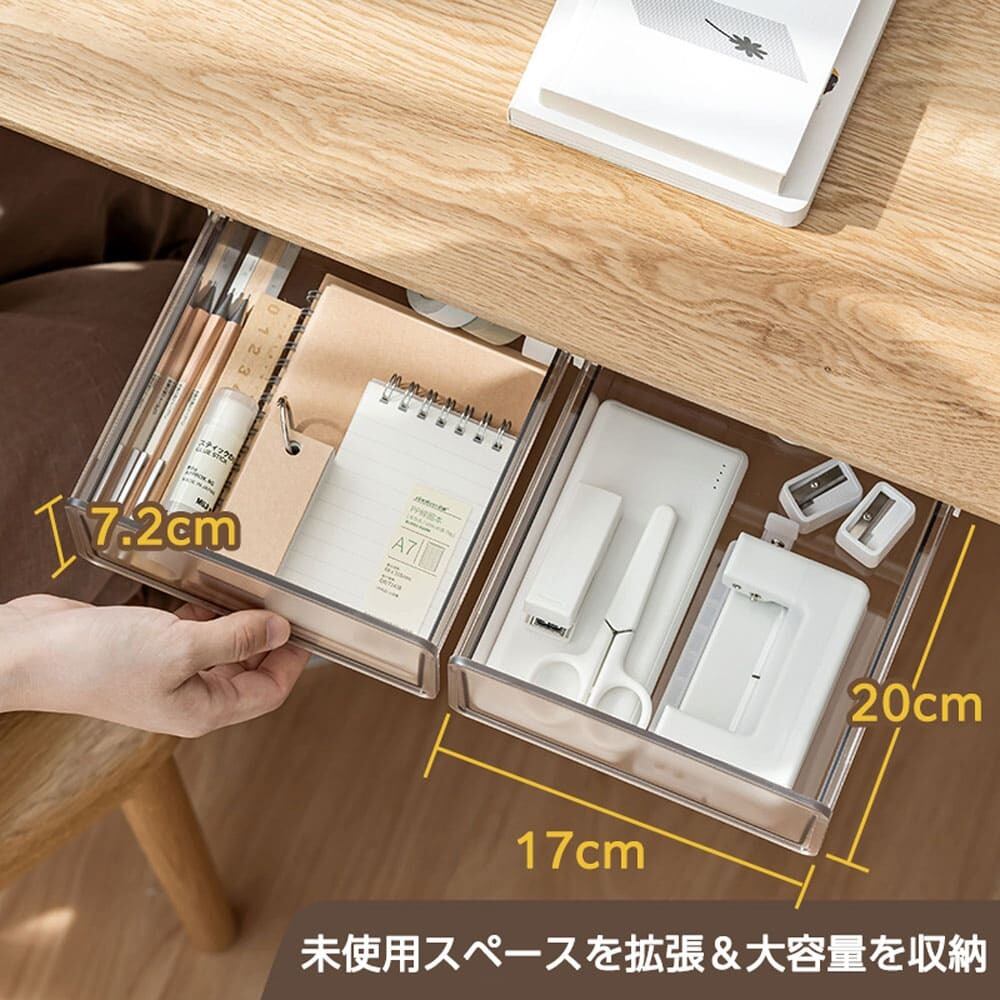 デスクの天板下に貼り付けるだけで、簡単に引き出しを追加できます。