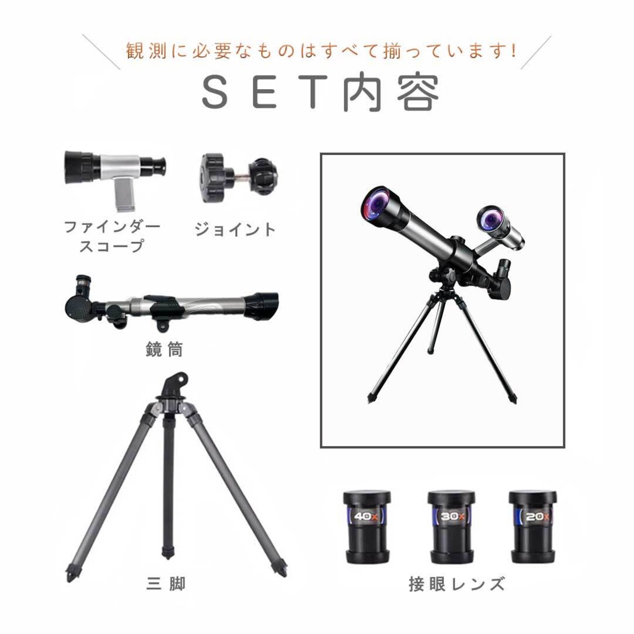 ・接眼レンズ×3(20×、30×、40×)